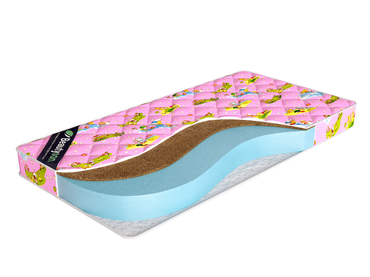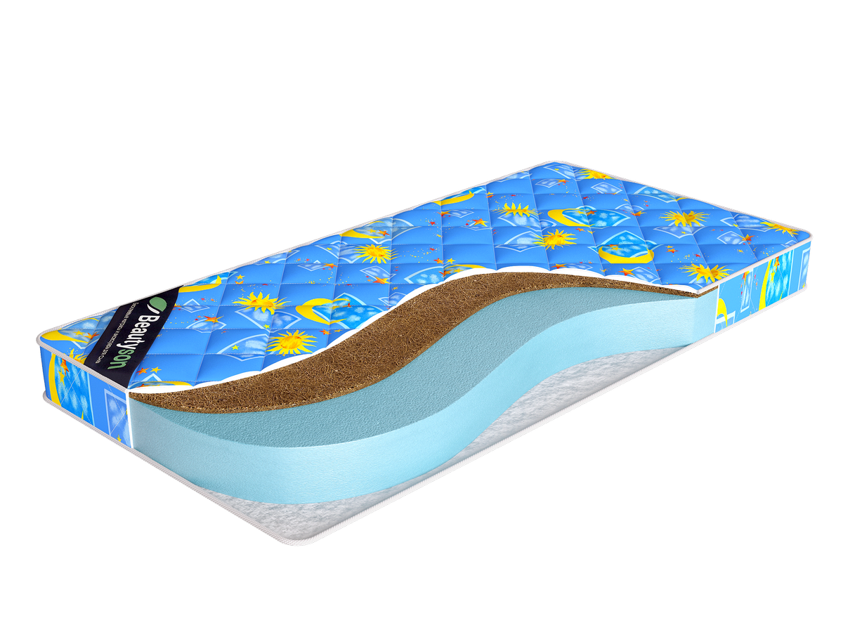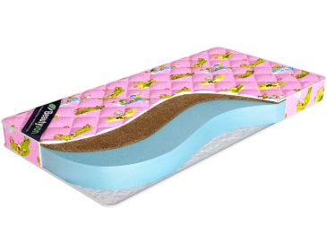 Матрас обладает разным уровнем жесткости сторон обеспечит правильное формирование осанки малыша. Одна сторона выполнена из упругого, высокоэластичного материала - airfoam. Отличительным преимуществом airfoam является то, что он отлично пропускает воздух, обеспечивая проветривание и гигиену внутри матраса. Другая сторона выполнена из кокосовой койры – жесткого ортопедичного материала, обладающего бактерицидными свойствами. Все слои матраса отлично вентилируются, создавая оптимальный микроклимат изделия.