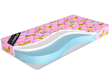 Матрас обладает разным уровнем жесткости сторон. Одна сторона выполнена из упругого, высокоэластичного материала - airfoam. Отличительным преимуществом airfoam является то, что он отлично пропускает воздух, обеспечивая проветривание и гигиену внутри матраса. Другая сторона выполнена из холлофайбера – прочного ортопедичного материала. Холлофайбер совершенно не впитывает влагу – это значительно облегчает просушку детского матраса в случае необходимости. Все слои матраса отлично вентилируются, создавая оптимальный микроклимат изделия.