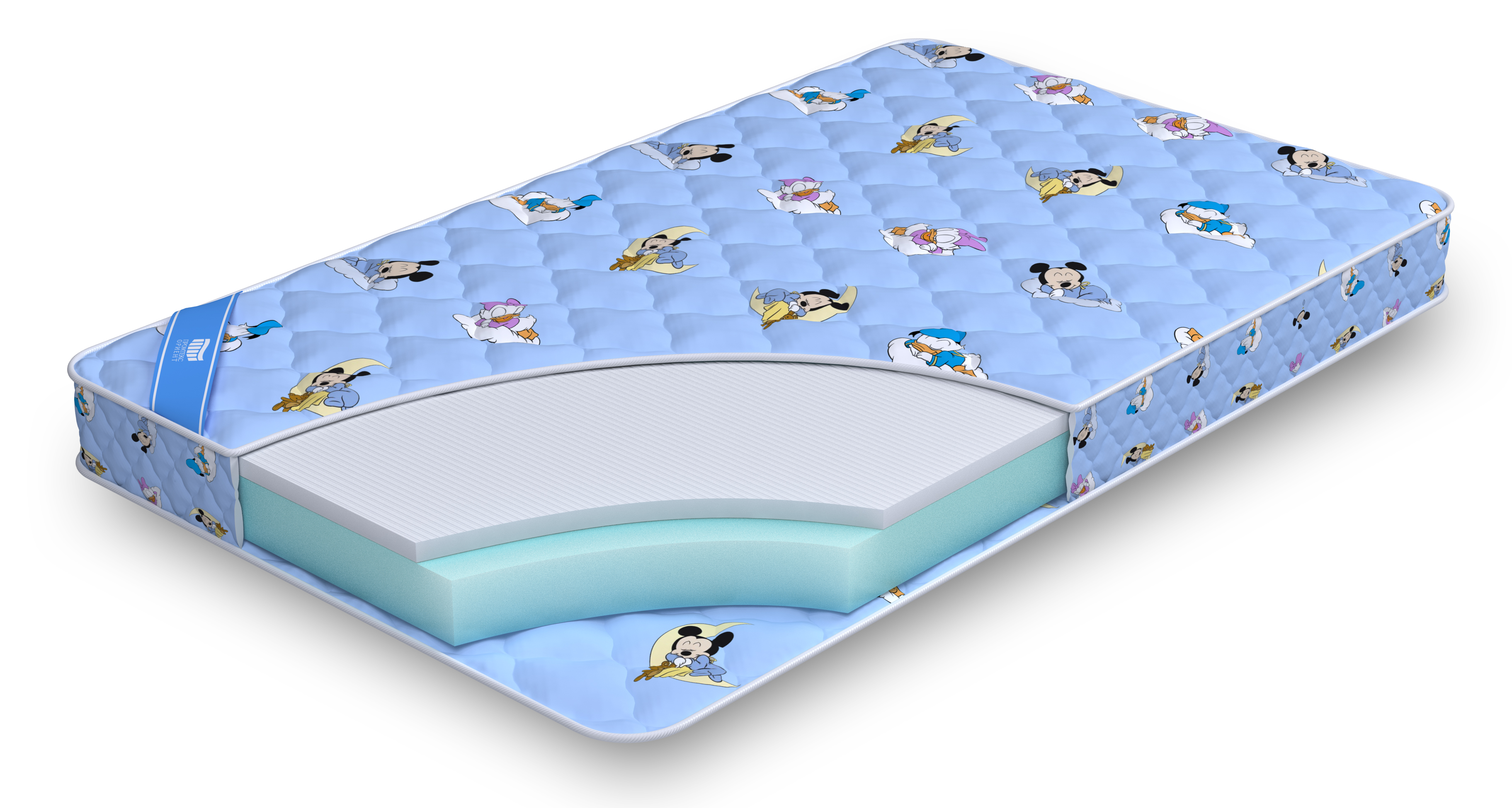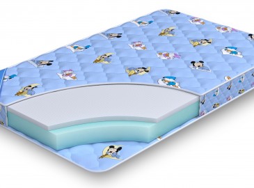 Упругость и умеренную жёсткость одной из сторон обеспечивает струтто волокон. Это искусственный материал, который способствует правильному положению позвоночника во время сна. Вторая сторона матраса – среднежёсткая, её образует слой пенополиуретана, который комфортно подстраивается под очертания тела ребенка, обеспечивая тем самым анатомический эффект. Все материалы гипоаллергенны, в них не заводятся пылевые клещи и микробы. Чехол матраса изготовлен из поликоттона с весёлыми детскими рисунками.