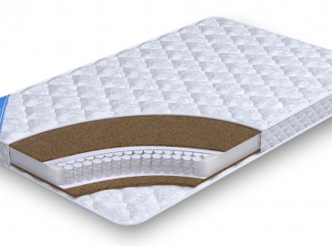 С двух сторон проложен слой латексированной кокосовой койры. Жесткий от природы материал, благодаря пропитке натуральным латексом, становится пластичным и подстраивается под изгибы тела ребенка. Наполнитель хорошо дополняет ортопедические свойства блока независимых пружин. А пористая структура волокон обеспечивает циркуляцию воздуха внутри всей конструкции.
