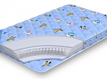Следующее, что бросается в глаза – это поликоттоновая обивка с детским принтом. Благодаря стёжке на полиэфирном волокне, она мягкая. Вшитая по периметру молния позволяет заглянуть в середину, где находится пружинный блок TFK, независимые пружины которого с лёгкостью подстраиваются под уже сформировавшиеся изгибы позвоночника подростка. Тонкие слои из струтто волокна по обе стороны от блока обеспечивают дополнительную поддержку и упругость поверхности. Максимальная нагрузка на изделие составляет 110 кг. Приобретая такой матрас, вы подарите ребёнку качественный сон и навсегда забудете о вредных микроорганизмах.