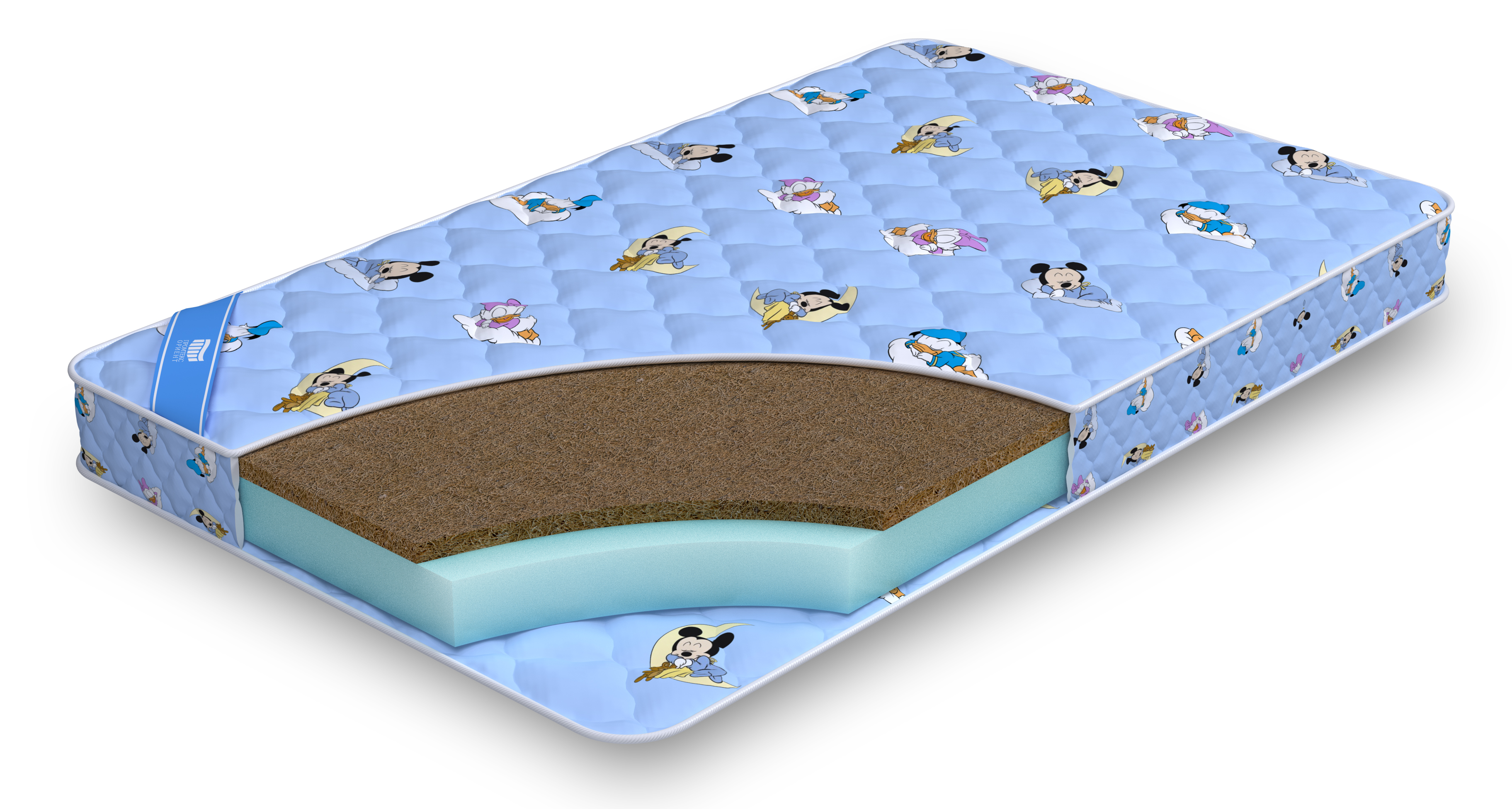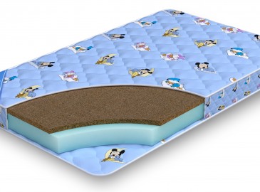Эффект разных поверхностей создаётся с помощью применения отличающихся по твёрдости наполнителей. Настил из кокосовой койры, пропитанной для упругости латексом, более жёсткий. Благодаря ему матрас поддерживает спину в правильном для формирования красивой осанки положении. Среднежёсткий пенополиуретан, монолит которого используется в качестве беспружинной основы матраса, обладает упругостью и пористостью латекса. Это помогает ей повторять очертания детского тела, в какой бы позе не уснул ребёнок.