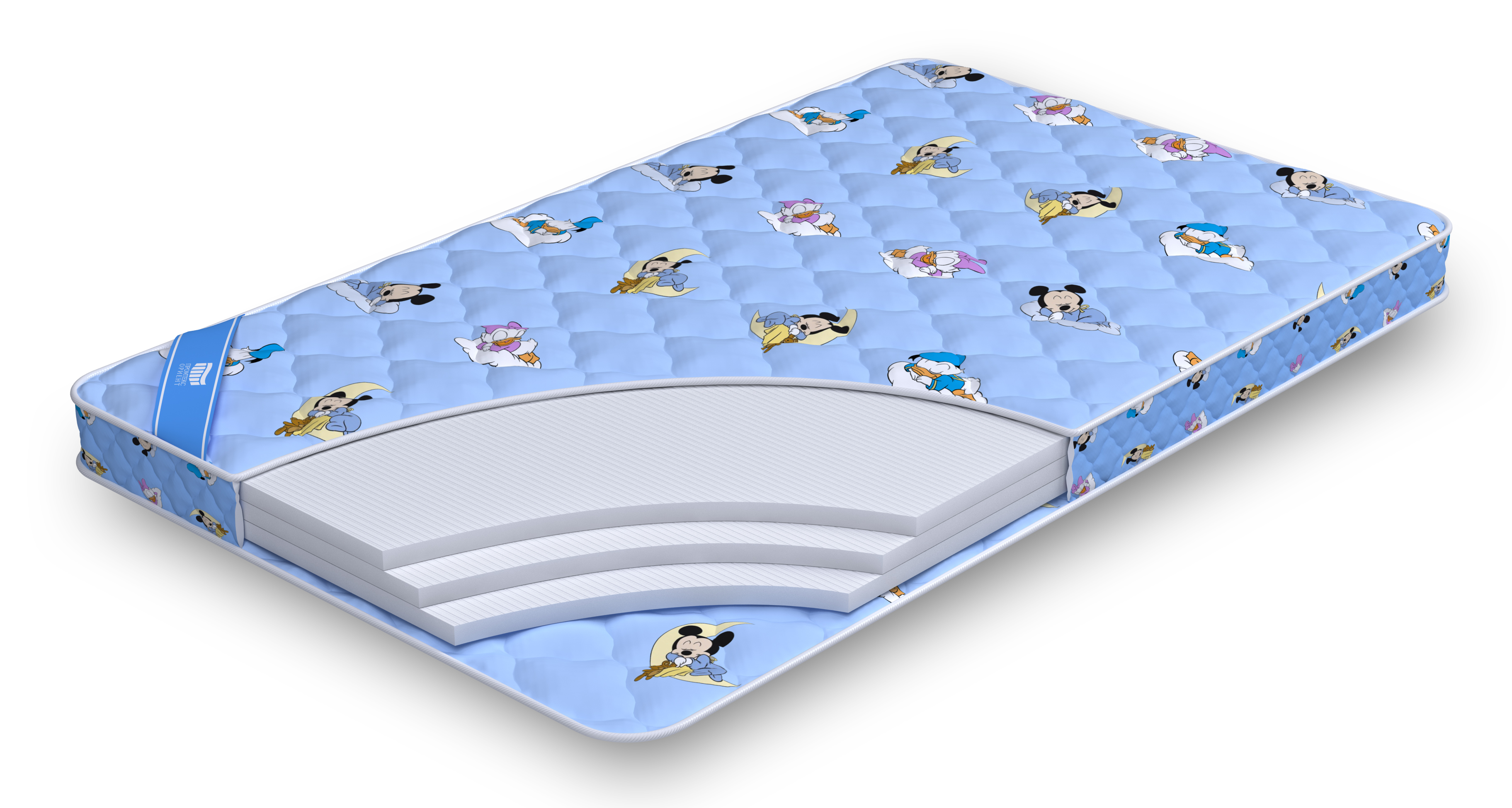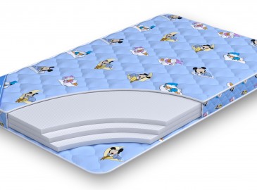 В качестве наполнителя в ней используется струттофайбер, волокна которого работают по принципу независимых пружин, обеспечивая упругую поддержку. Это экологически безопасный материал, который не вызывает раздражения. По своим ортопедическим свойствам он напоминает кокосовую койру. Струттофайбер, как и она, устойчив к нагрузкам, не имеет запаха и не впитывает влагу. Слои струтто (по 3 см каждый) плотно обтянуты чехлом из поликоттона с красивыми рисунками на детскую тематику. Чтобы слегка смягчить спальную поверхность, чехол простёган на синтепоне.
