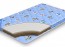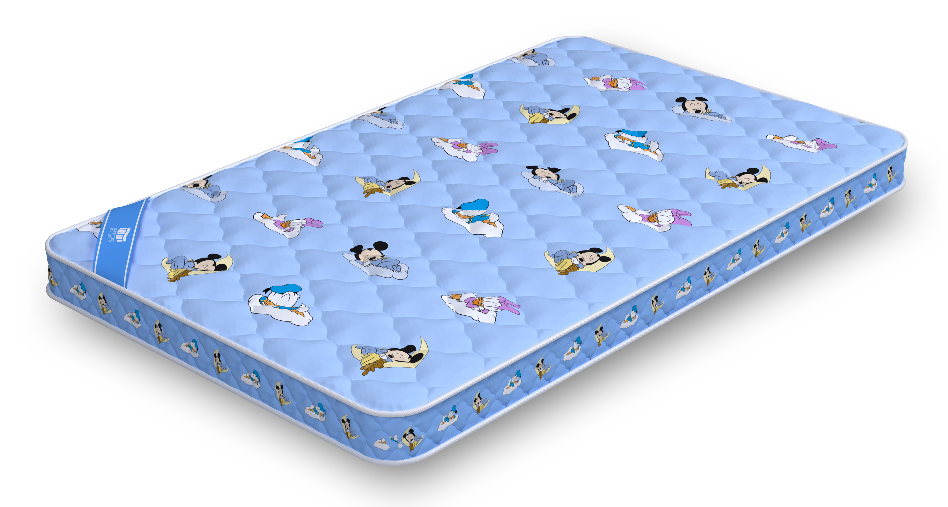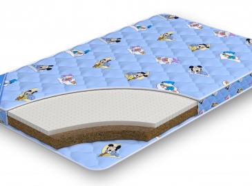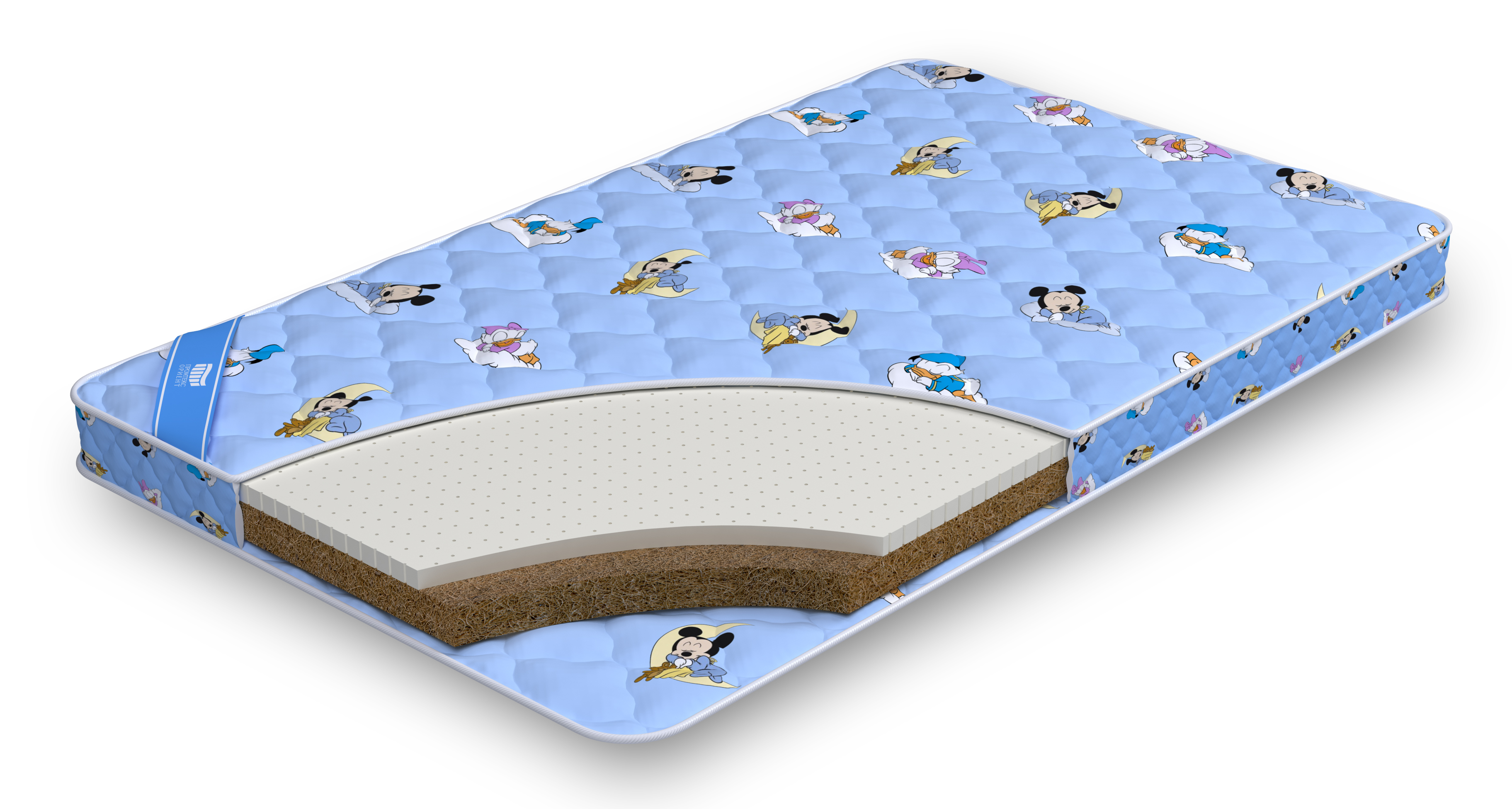 Первым лучше подойдёт умеренная жёсткость спального места, которую обеспечивает настил из кокосовой койры. Волокна пропитаны натуральным латексом, а потому более упругие, что помогает им поддерживать формирующийся позвоночник крохи в правильном положении без давления. Детишкам старше 4 лет предпочтительнее среднежёсткая поверхность: она куда мягче, эластичнее и комфортнее благодаря натуральному латексу. Дополняет модель обивка из поликоттона с ярким детским принтом.