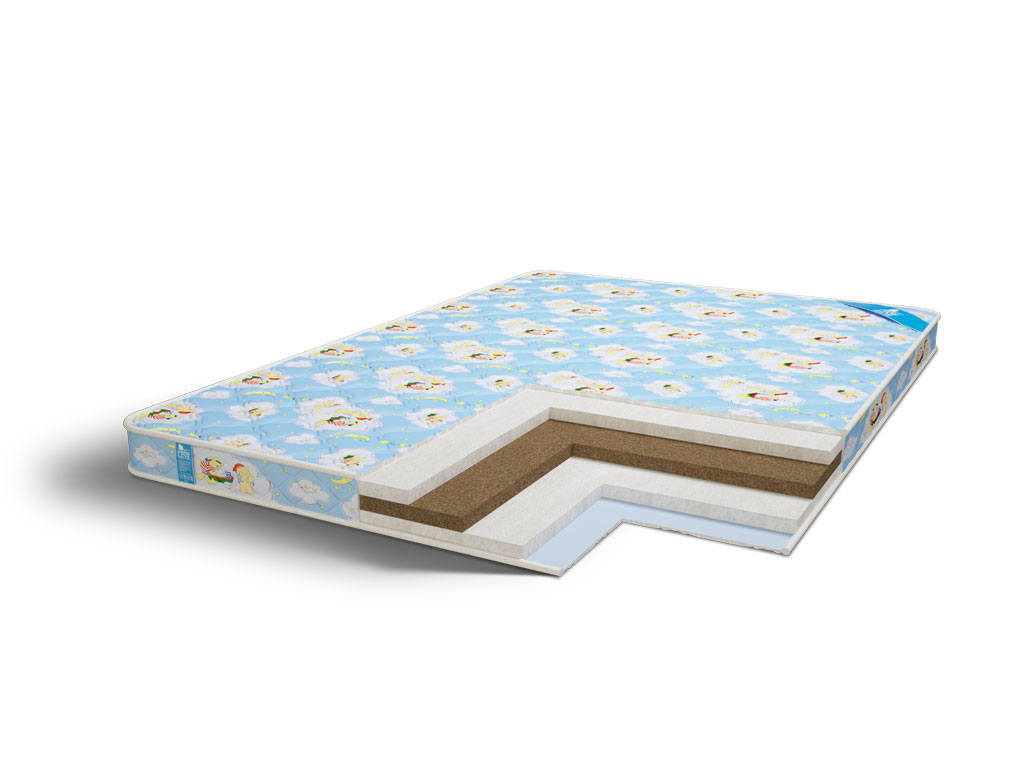 Матрас, усиленный кокосовой койрой. Благодаря чередованию слоев, матрас приобретает более износостойкие свойства. Данная модель подходит как младенцам, так и подросткам.