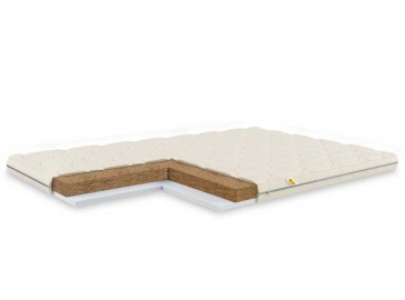 С одной стороны добавлен слой латексированной кокосовой койры толщиной 6 см, придающий дополнительную жесткость и долговечность матрасу.