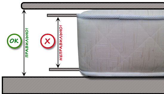 Необходимо помнить, что высота купленного матраса измеряется не между верхним и нижним кантами матраса, а между максимально выступающими поверхностями матраса.