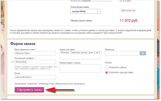 Ваш заказ будет получен нами по электронной почте, в кратчайшие сроки мы свяжемся с Вами для уточнения заказа и обсуждения даты доставки.