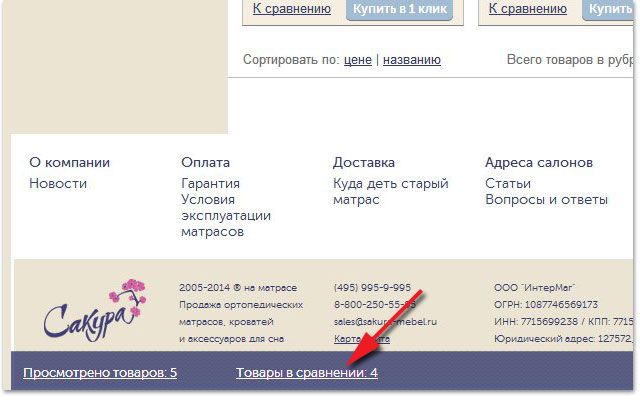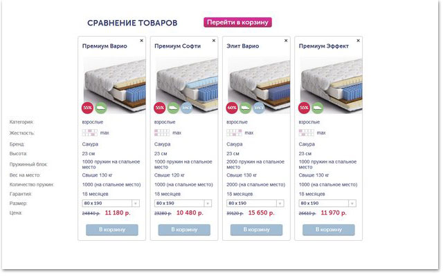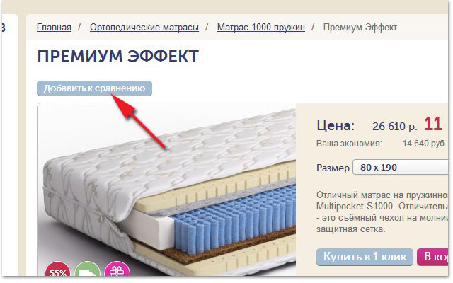 Для этого отметьте кнопкой «Добавить к сравнению» заинтересовавшие Вас матрасы.