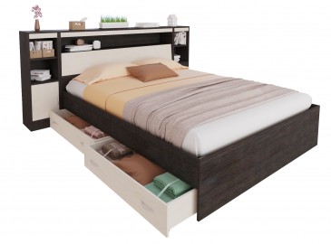 Кровать с ящиками, закроватным модулем и матрасом ПРАГА (Сакура)