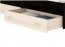 Изголовье выполнено в виде модуля для хранения белья. Откидная дверь за подушками скрывает вместительное пространство для хранения постельных или иных принадлежностей.