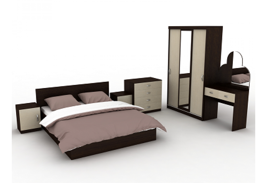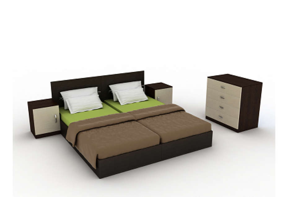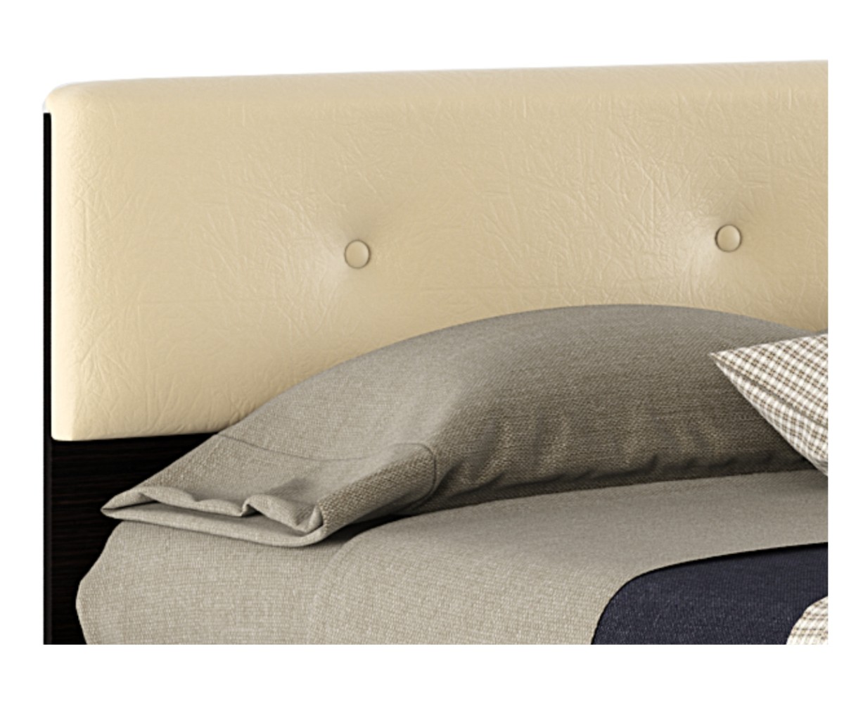 Кровать изготовлена из ЛДСП 16мм. Изголовье обтянуто бежевой эко кожей;