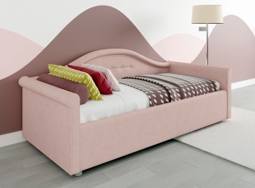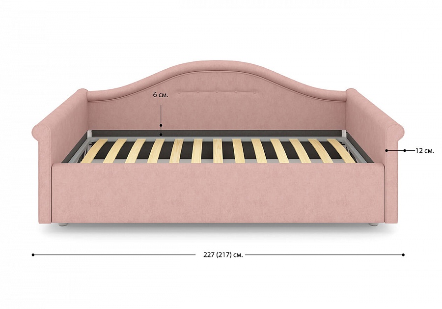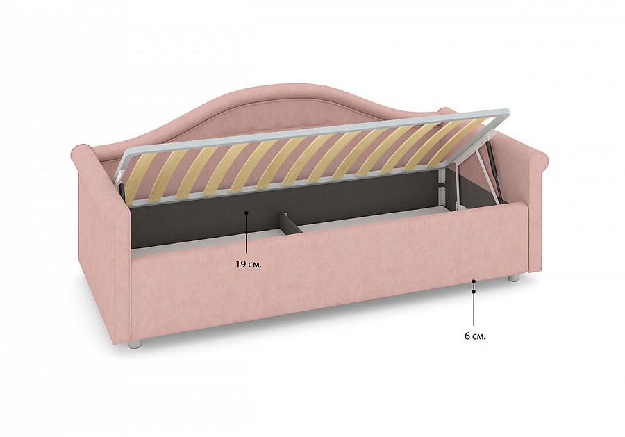 Комфортная кровать, стилизованная под диван. В комплект входит цельное металлическое кроватное основание, механизм подъема с бельевым ящиком;