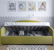 Удобная угловая кушетка. В комплект входит цельное металлическое кроватное основание, механизм подъема с бельевым ящиком;