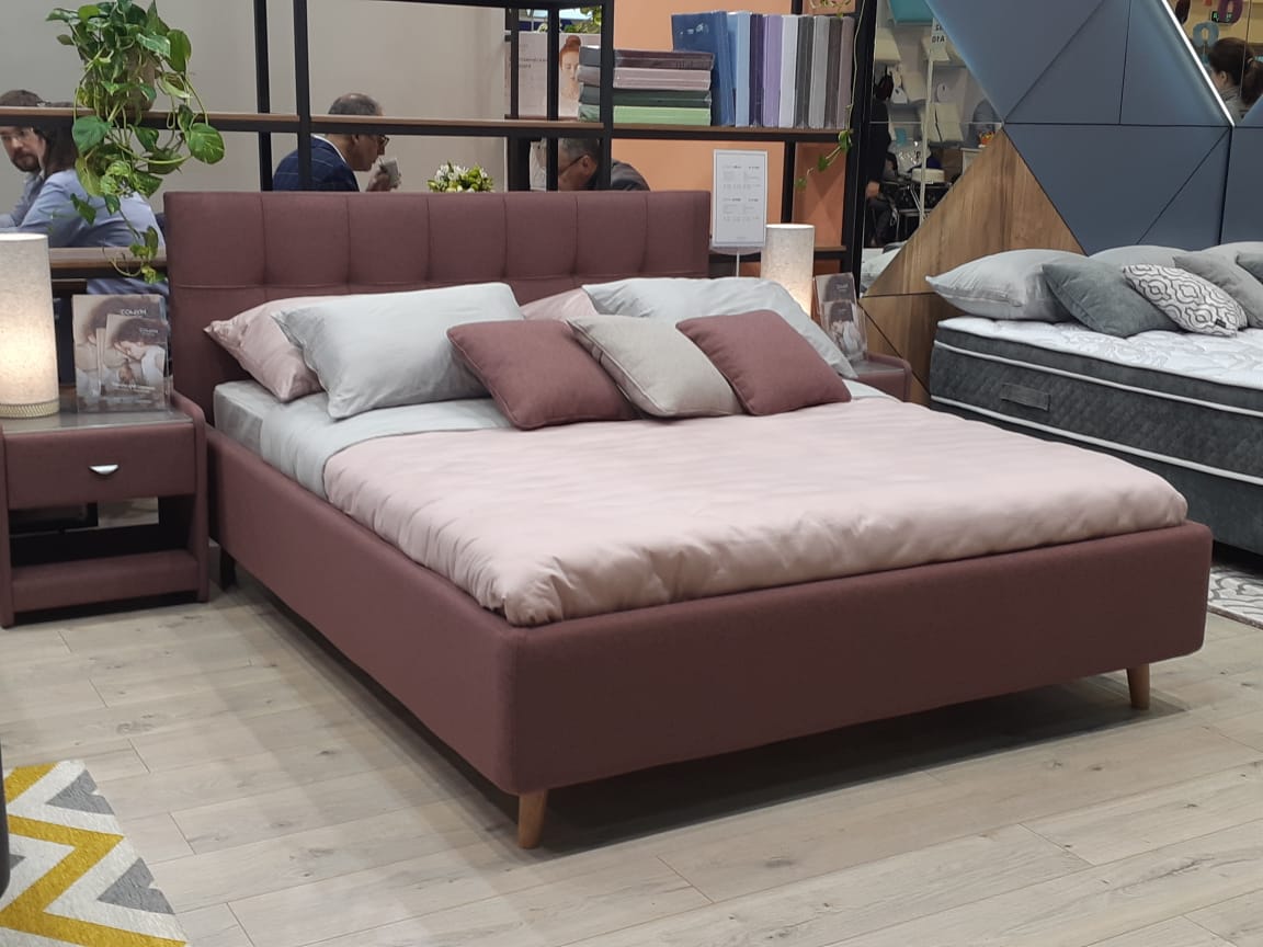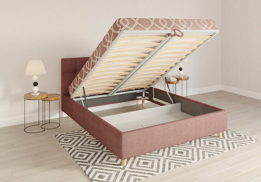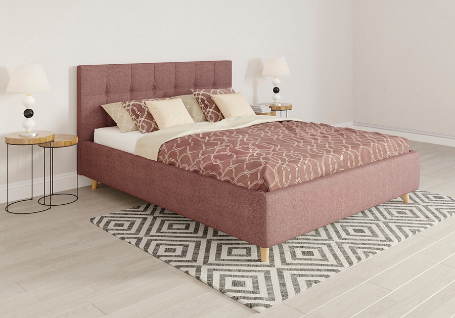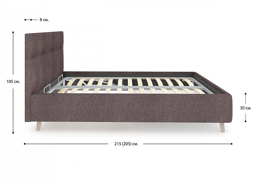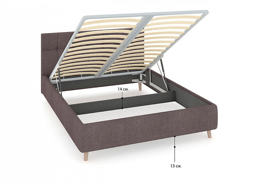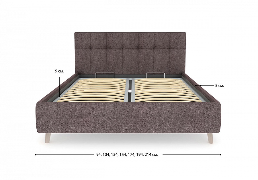 Элегантная интерьерная кровать с ортопедическим основанием и функцией подъема спального места. Обивка кровати имеет множество вариантов цветового исполнения: из экокожи, глазго и велюра. Обратная сторона изголовья обита спандбондом, но, при желании, её можно выполнить из основного обивочного материала.
