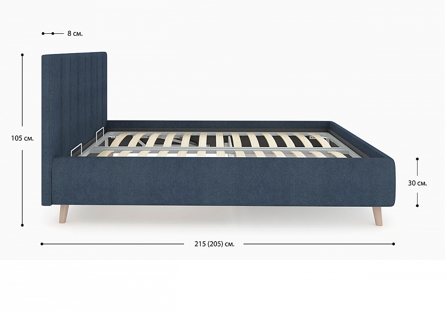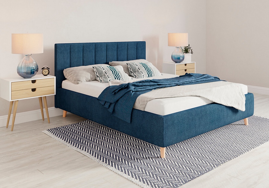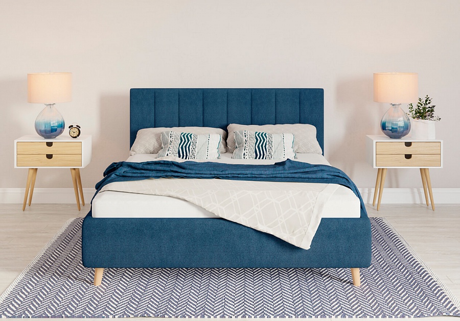 Элегантная интерьерная кровать с ортопедическим основанием и функцией подъема спального места. Обивка кровати имеет множество вариантов цветового исполнения: из экокожи, глазго и велюра. Обратная сторона изголовья обита спандбондом, но, при желании, её можно выполнить из основного обивочного материала.