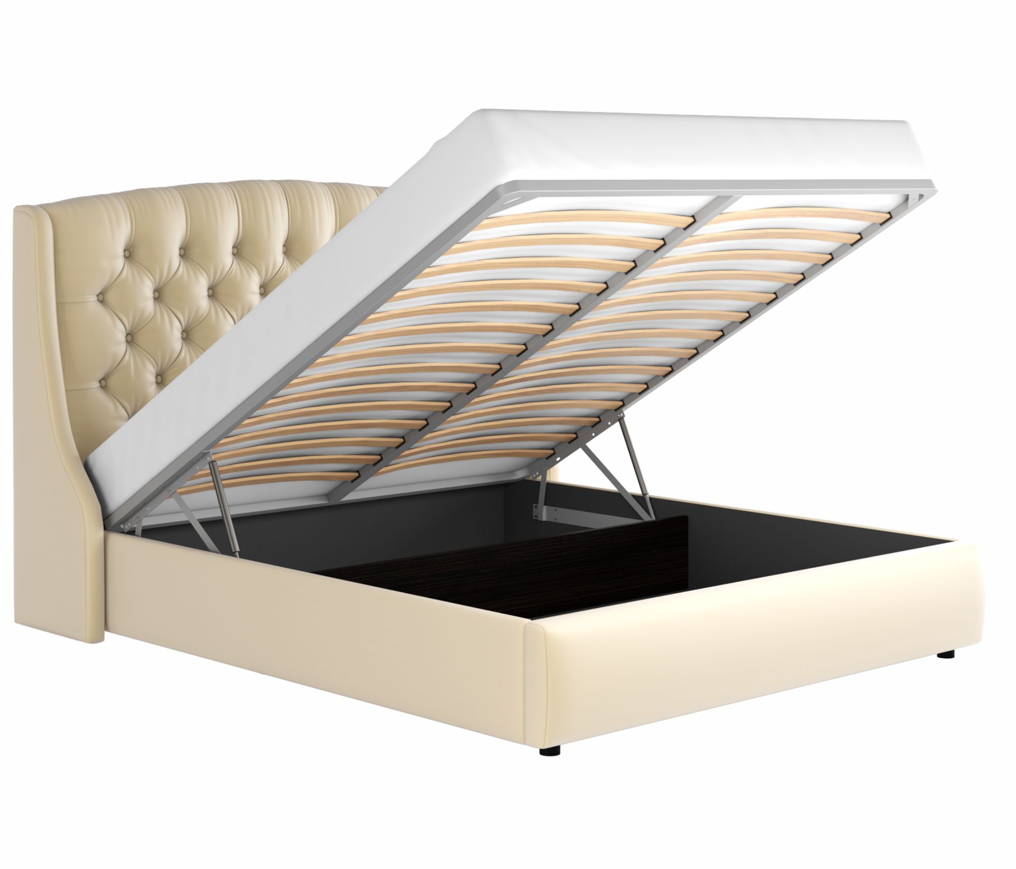 RIVIERA-KREM - Роскошная кровать из эко - кожи с ортопедическим основанием, подъемным механизмом и ящиком для белья в комплекте. Акция - Матрас в подарок!
