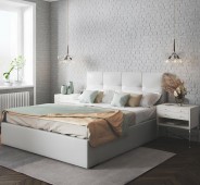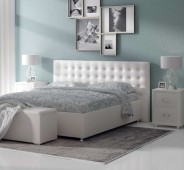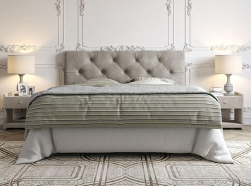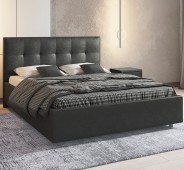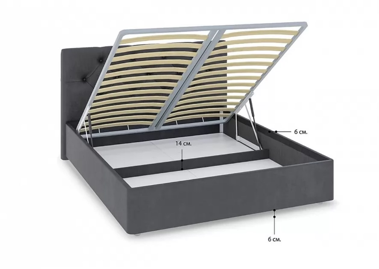 Элегантная интерьерная кровать с изголовьем, украшенным декоративными пуговицами и глубокой пиковкой. В комплект кровати входит кроватное основание c подъемным механизмом с бельевым ящиком;