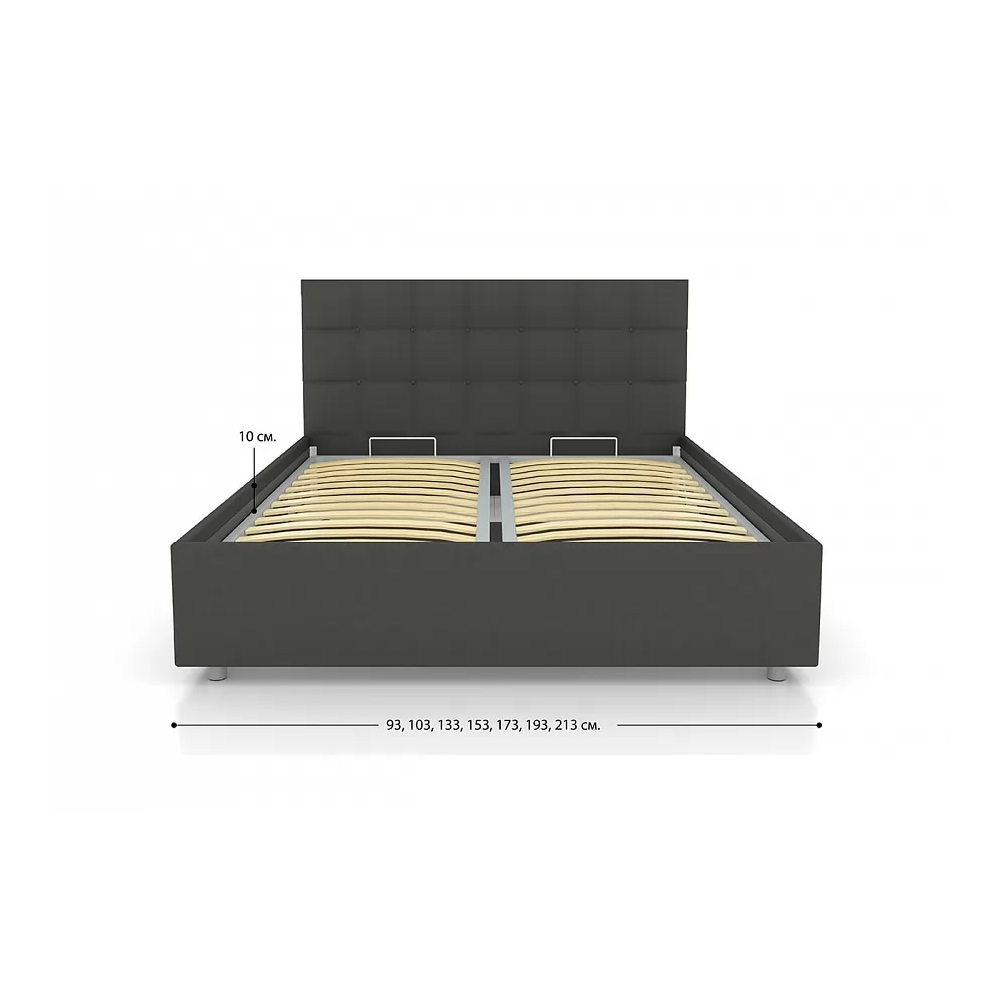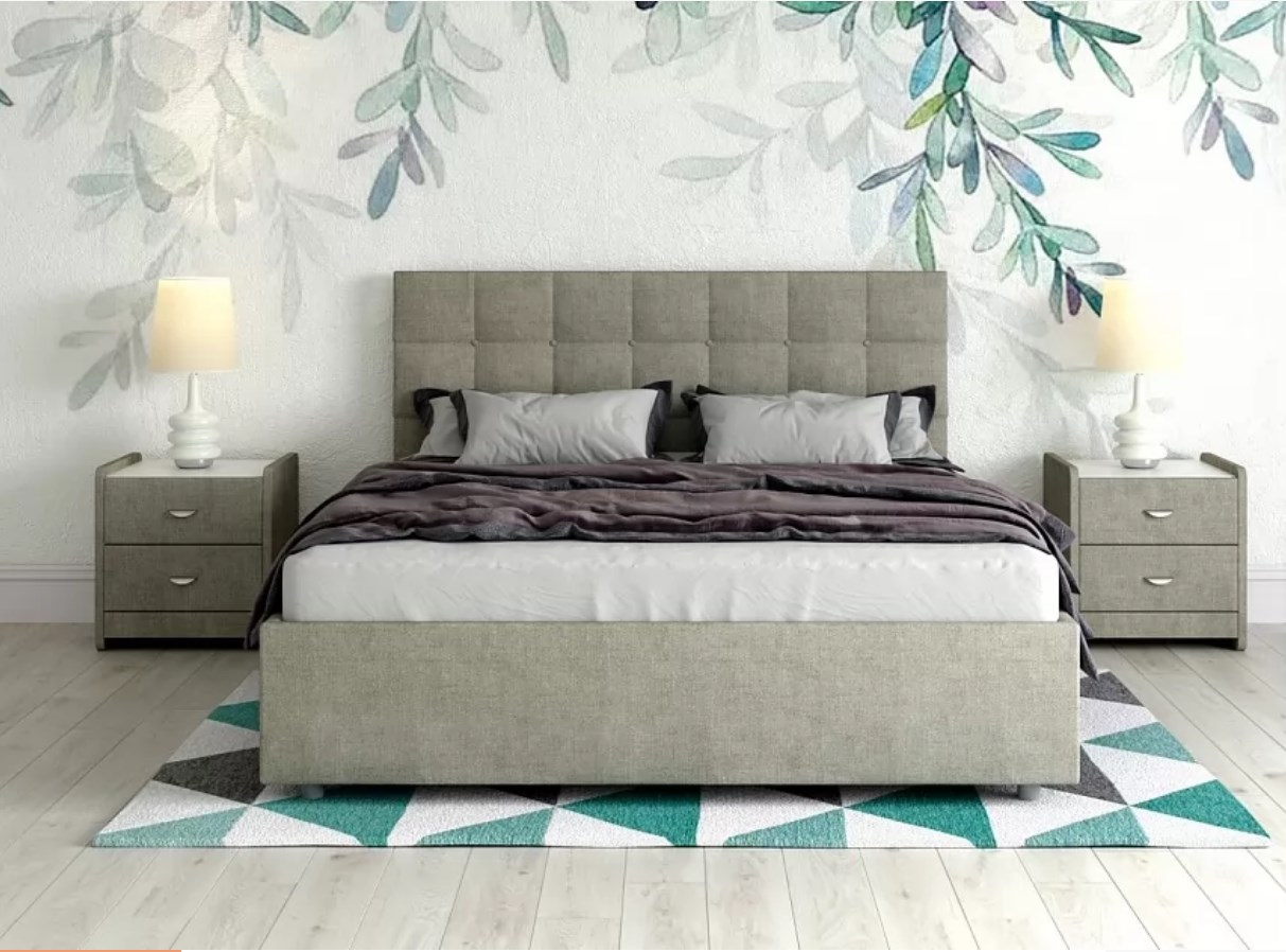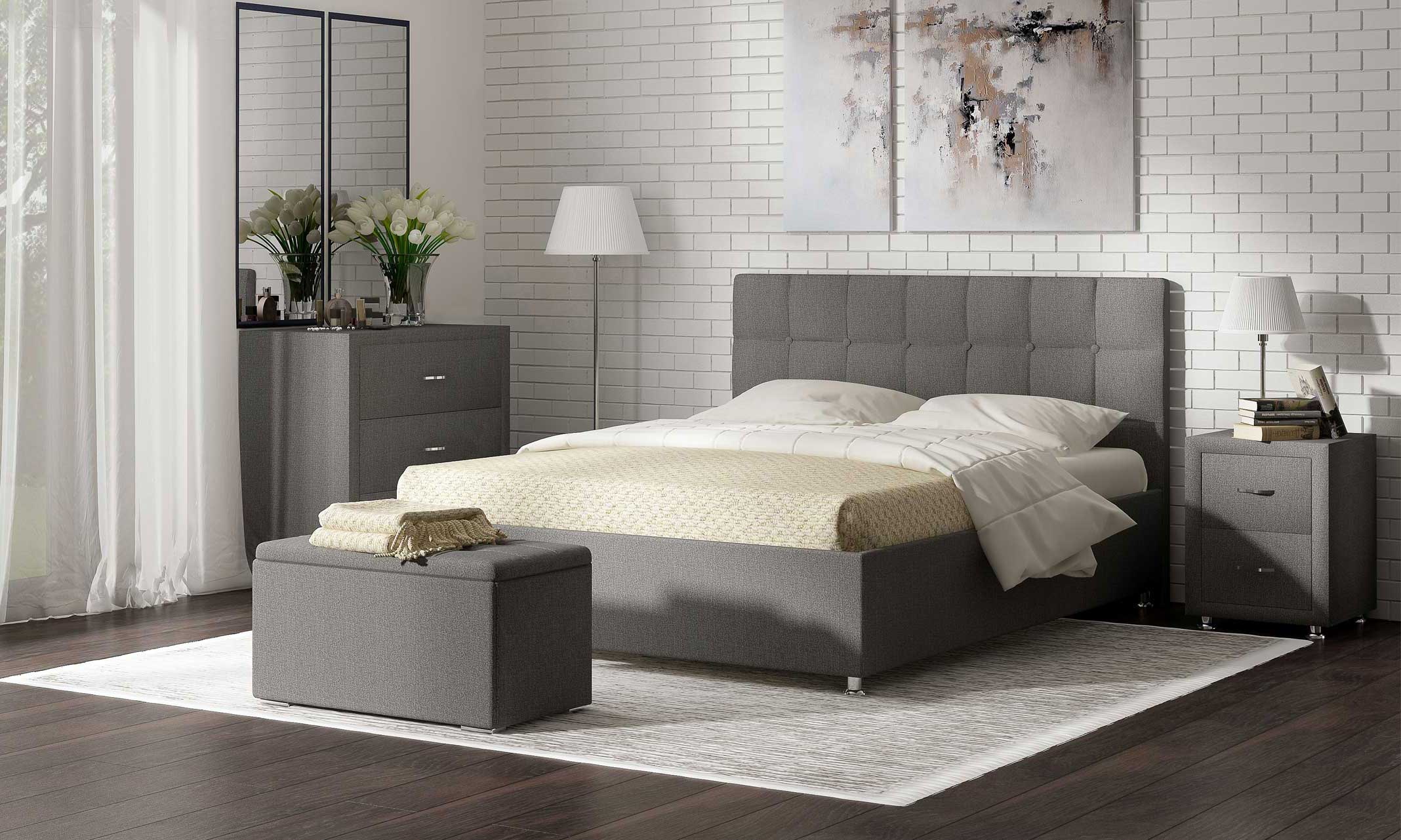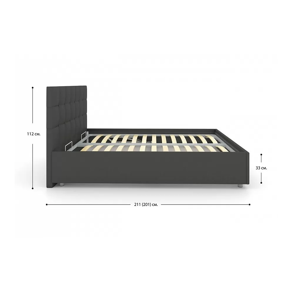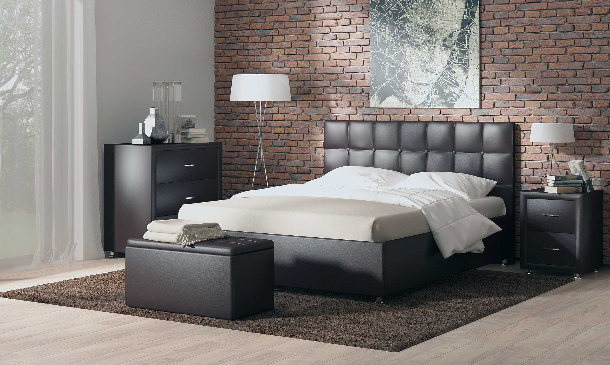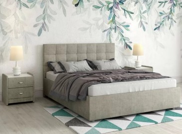 Элегантная интерьерная кровать с изголовьем, украшенным декоративными пуговицами, которые можно заменить на стразы. Обивка кровати имеет 12 вариантов цветового исполнения: из экокожи, глазго и велюра. Обратная сторона изголовья обита спандбондом, но, при желании, её можно выполнить из основного обивочного материала. Модель изготовлена из ДСП.