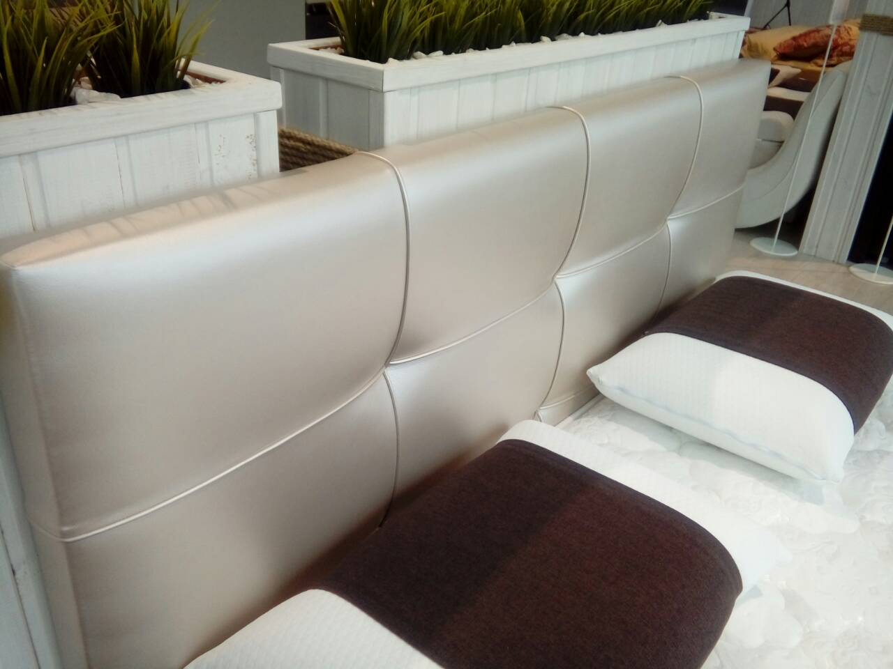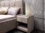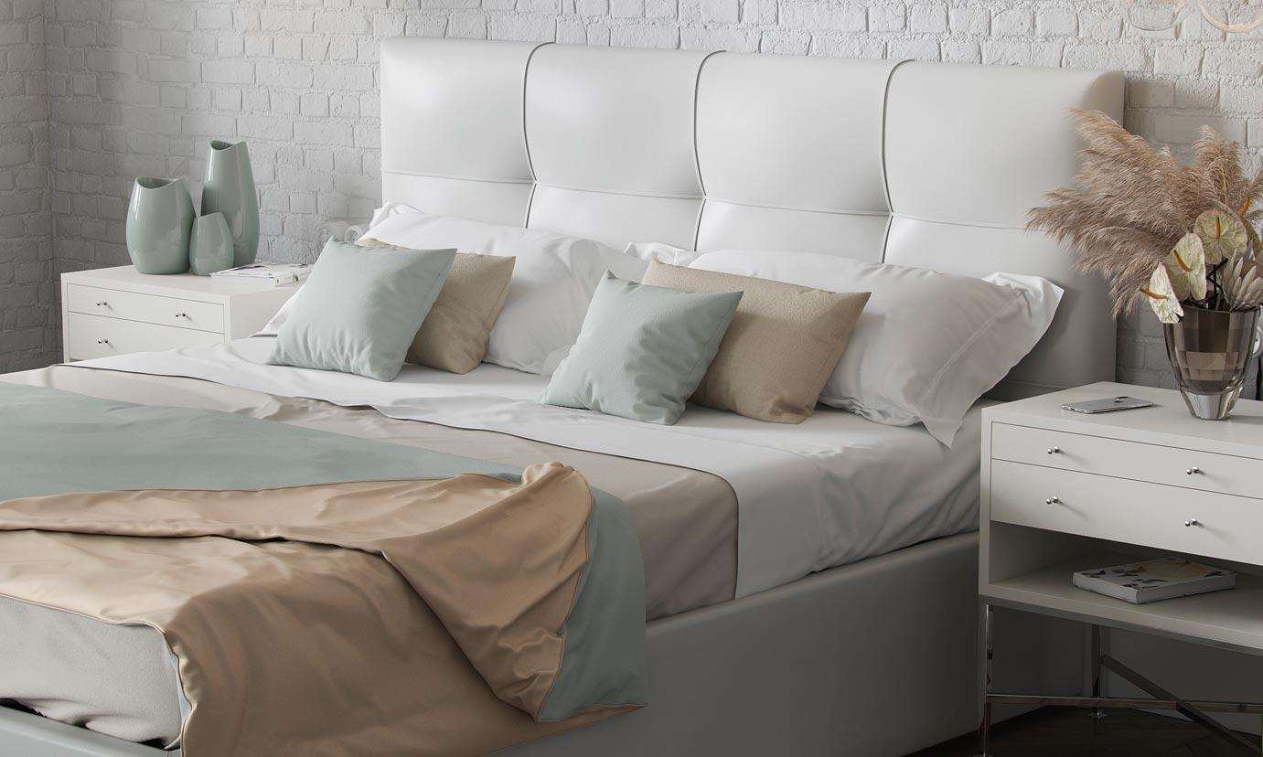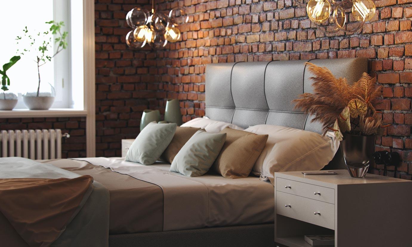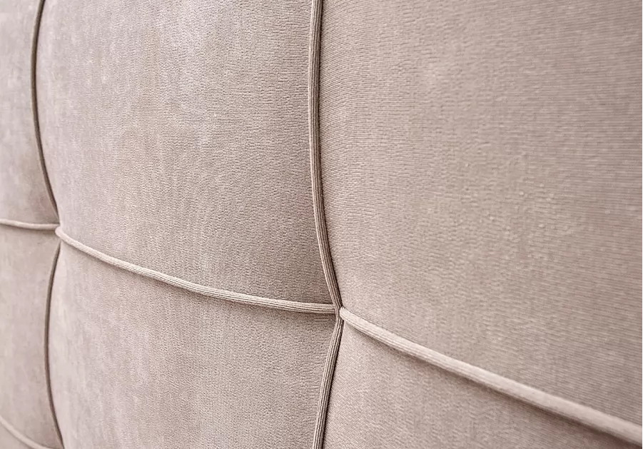Элегантная интерьерная кровать с изголовьем, украшенным декоративными пуговицами, которые можно заменить на стразы. Обивка кровати имеет широкую гамму вариантов цветового исполнения: из экокожи, глазго и велюр, микровелюр, вельвет. Обратная сторона изголовья обита спандбондом, но, при желании, её можно выполнить из основного обивочного материала.
