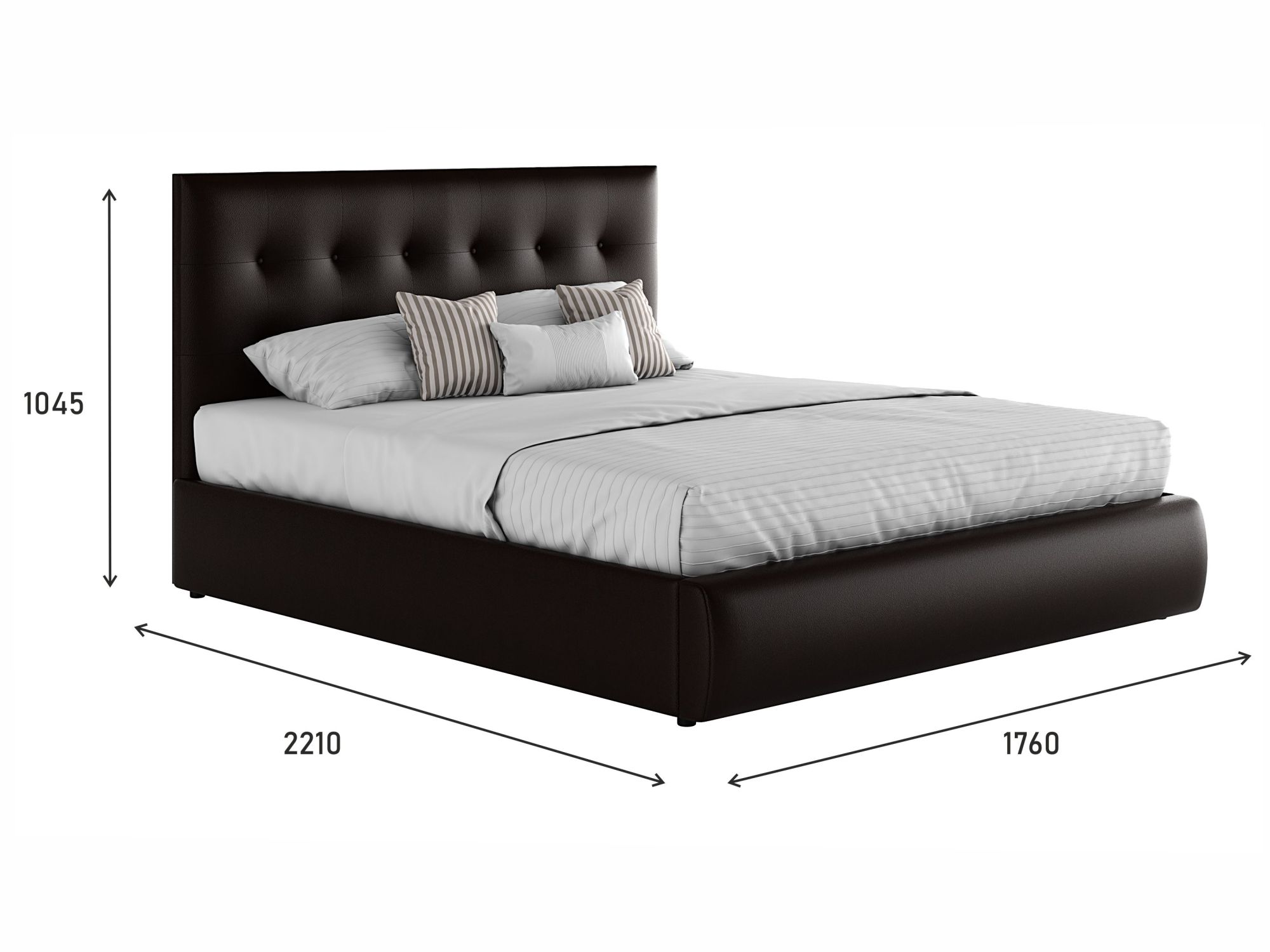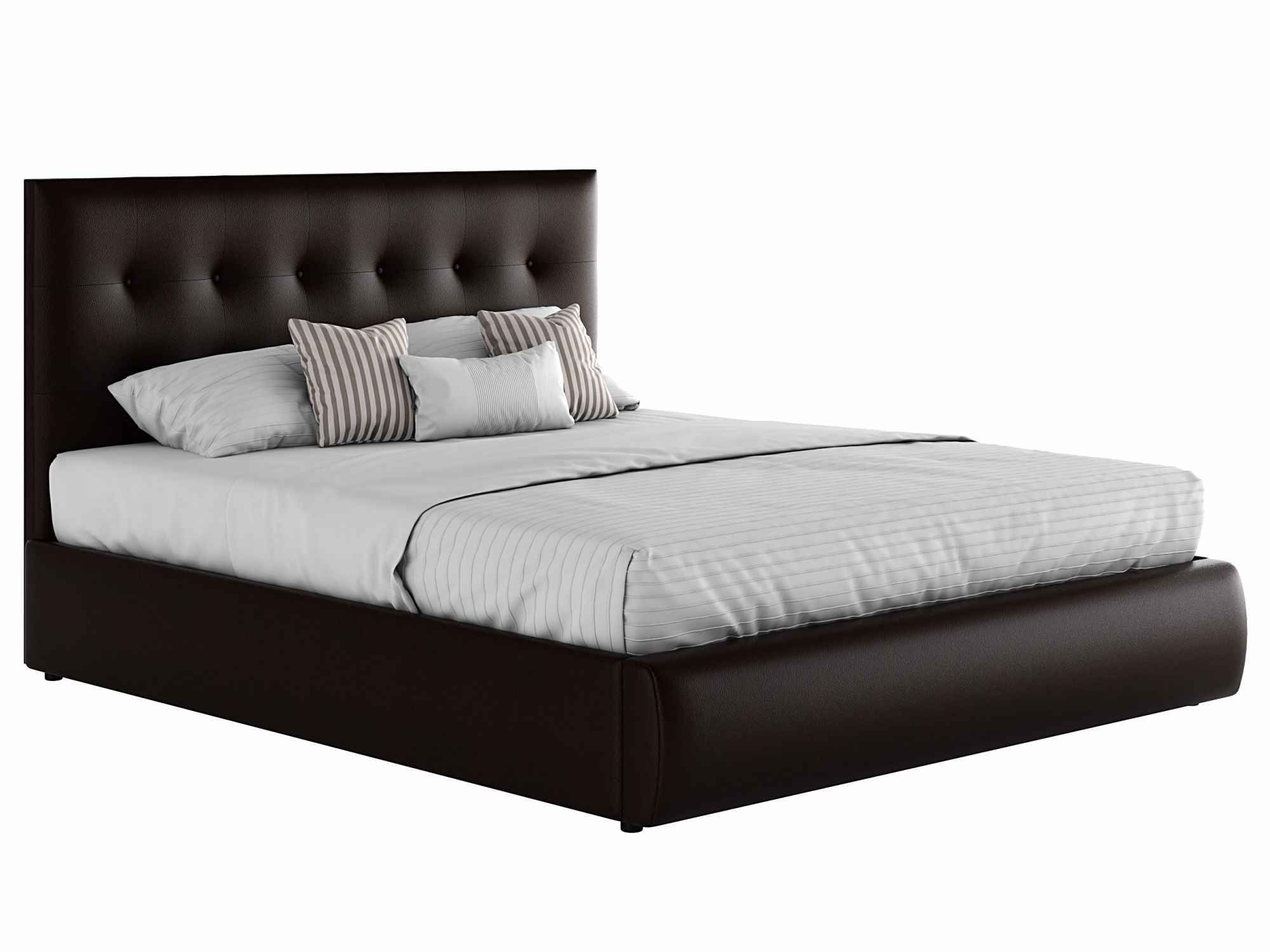Современная, интерьерная кровать из тёмной экокожи с подъёмным механизмом, ортопедическим основанием и ящиком для белья в комплекте. Акция - Матрас в подарок!