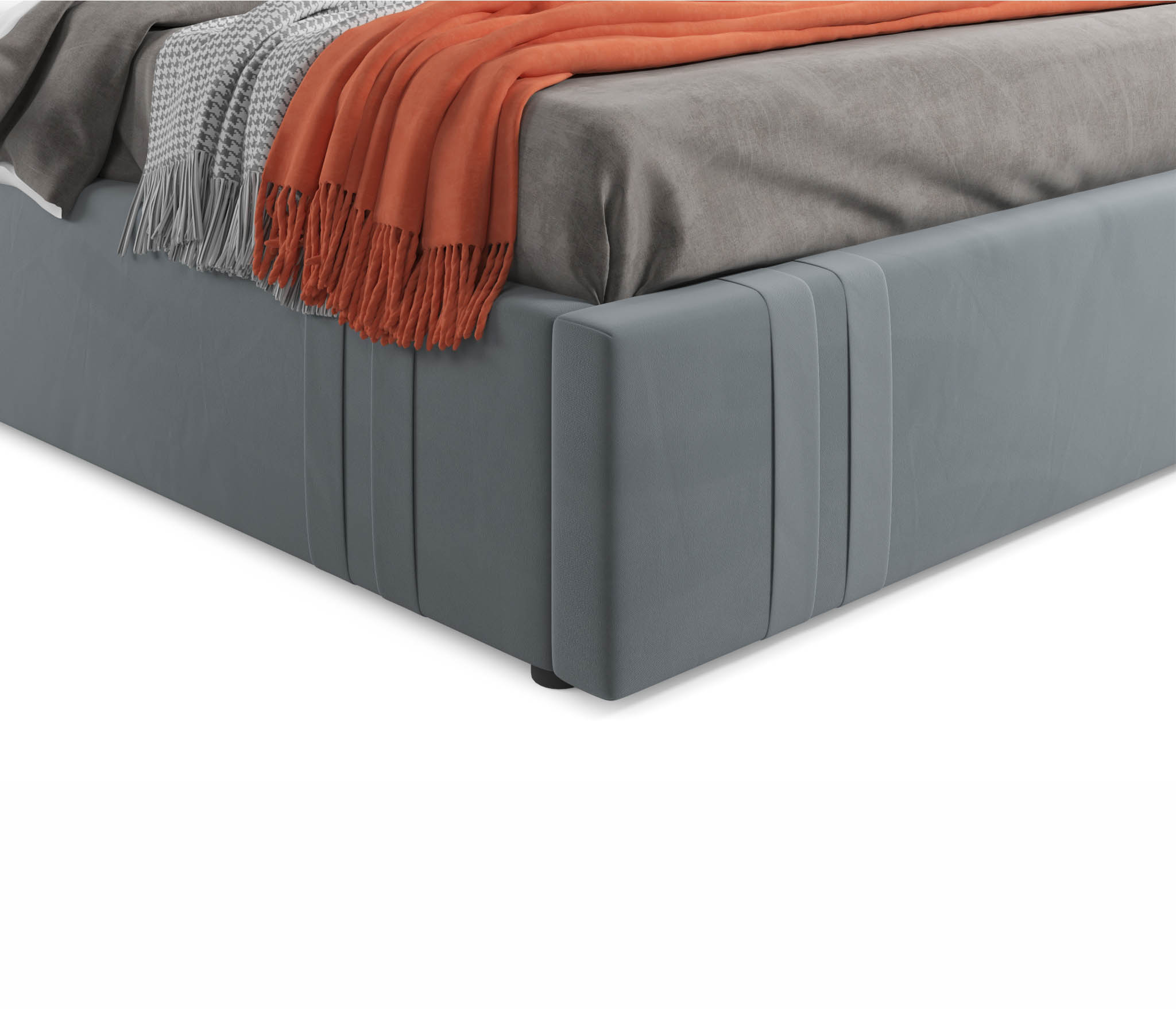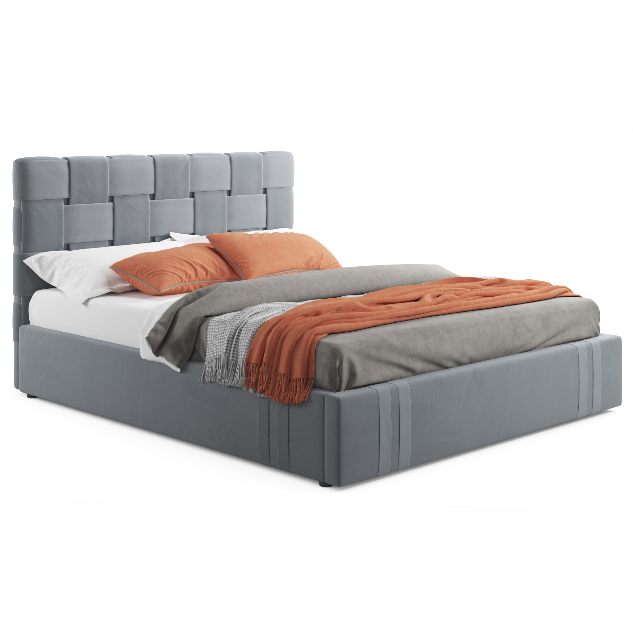 MELODIA-GRAY - модное решение для вашей спальни. Яркий акцент 2-спальной кровати сделан на мягкое высокое изголовье, созданное вручную путем переплетения тканей;