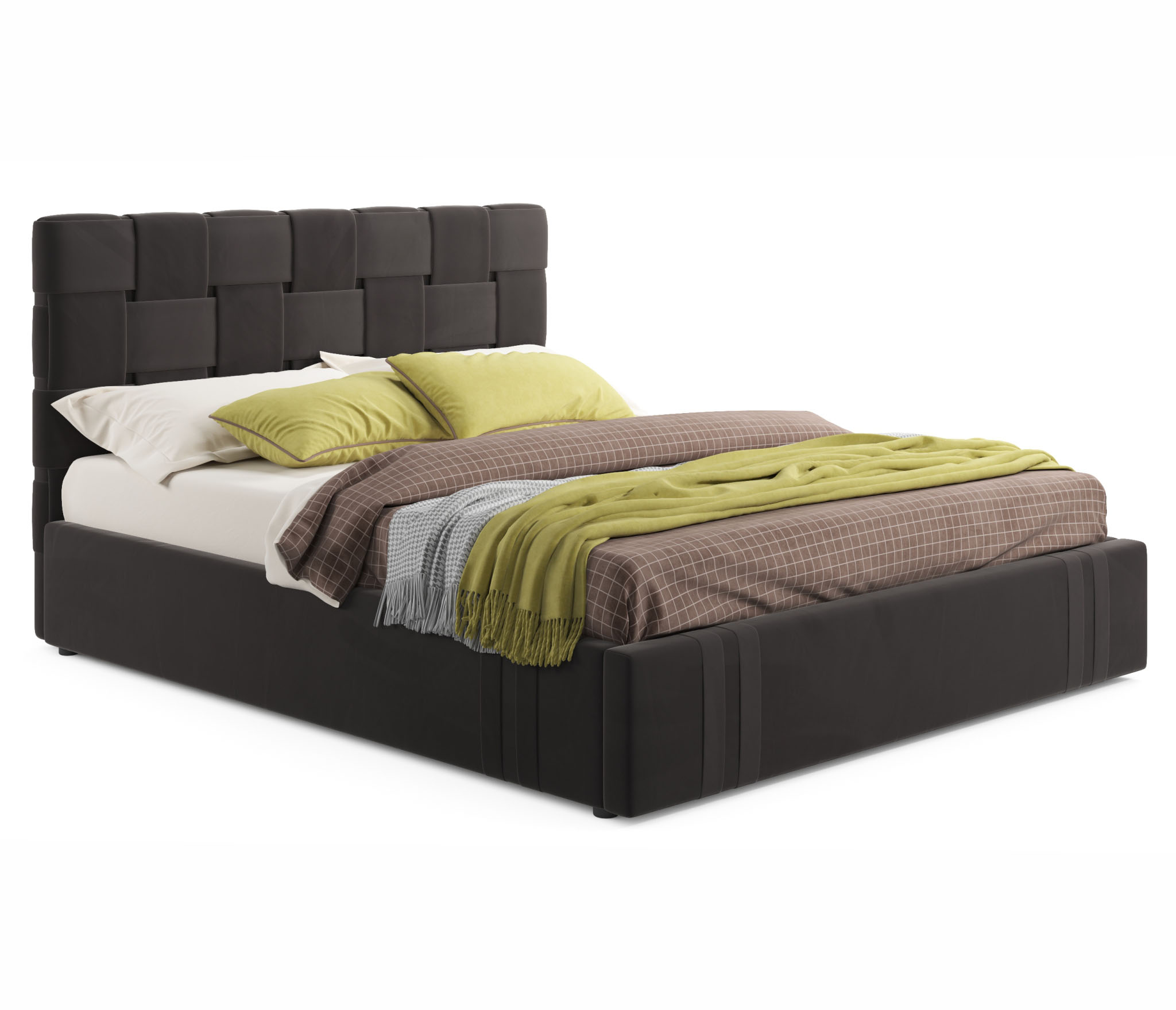 MELODIA-CHOKOLATE - модное решение для вашей спальни. Яркий акцент 2-спальной кровати сделан на мягкое высокое изголовье, созданное вручную путем переплетения тканей;