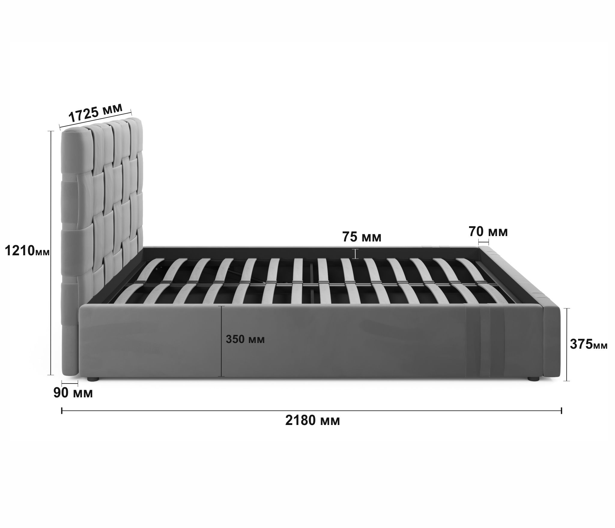 В комплектацию кровати входит ортопедическое основание, подъемный механизм и матрас с зависимым пружинным блоком Bonnel. При желании можно заменить матрас на любую другую модель;