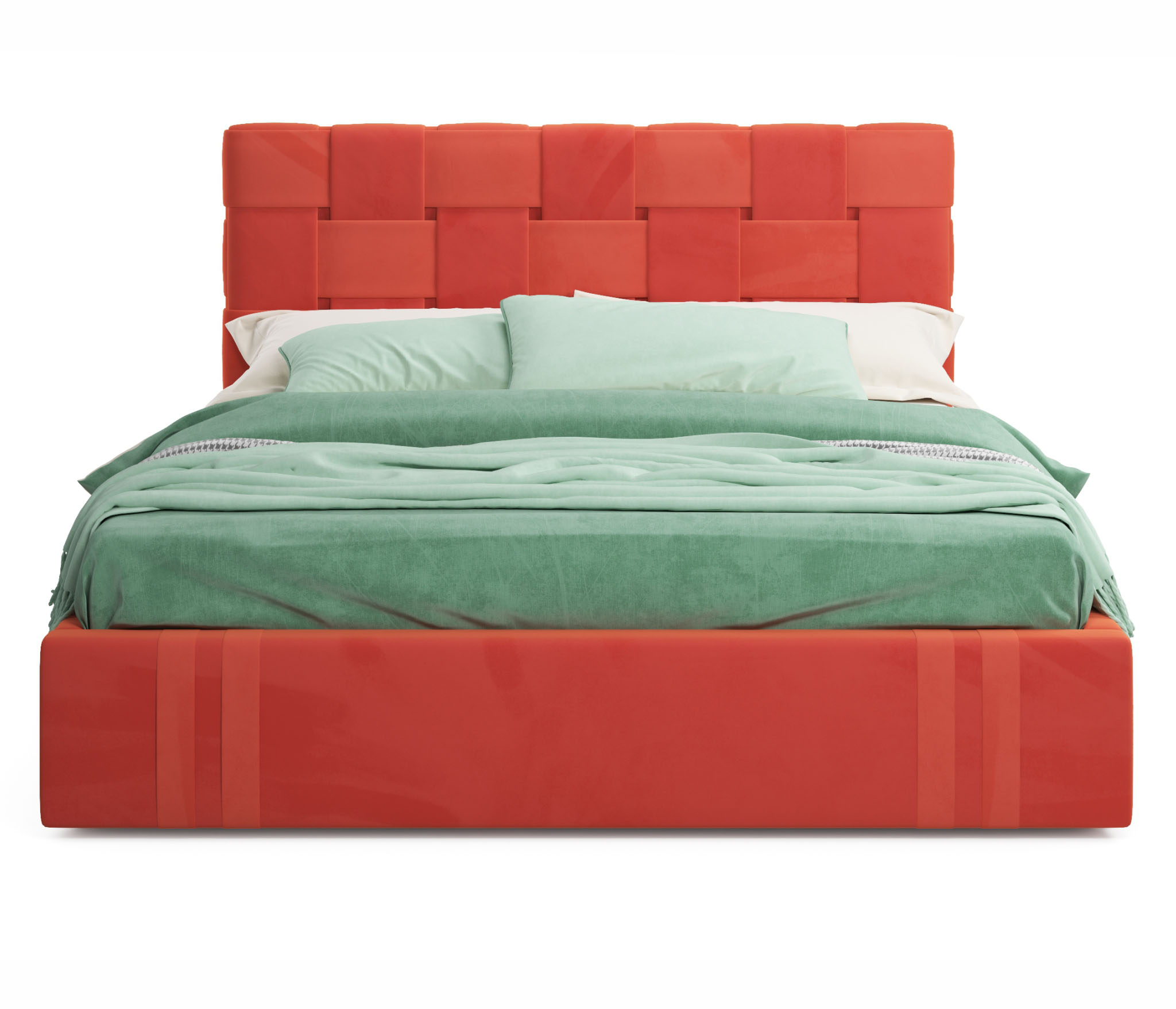 MELODIA-RED - модное решение для вашей спальни. Яркий акцент 2-спальной кровати сделан на мягкое высокое изголовье, созданное вручную путем переплетения тканей;