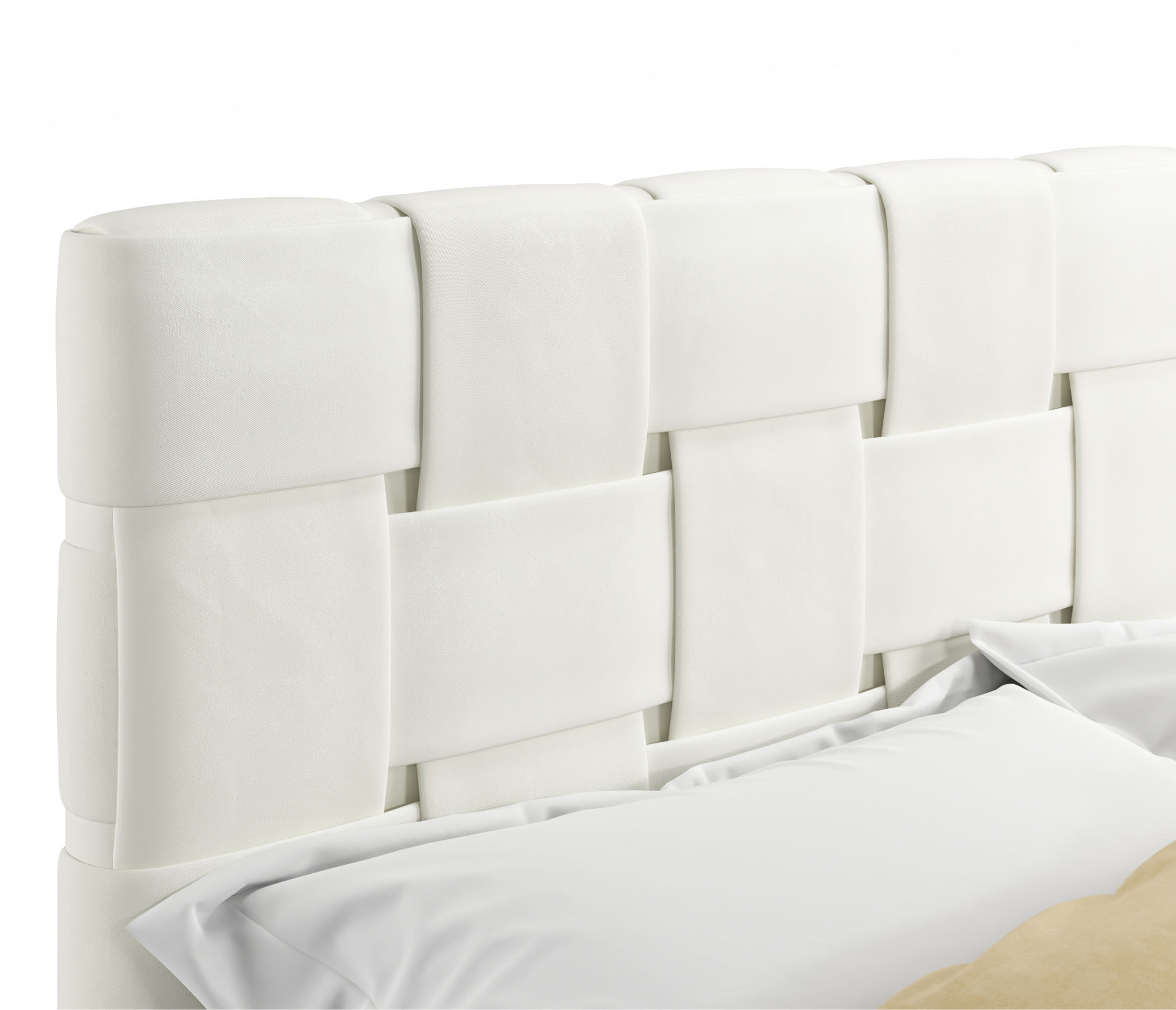 MELODIA-LATTE - модное решение для вашей спальни. Яркий акцент 2-спальной кровати сделан на мягкое высокое изголовье, созданное вручную путем переплетения тканей;
