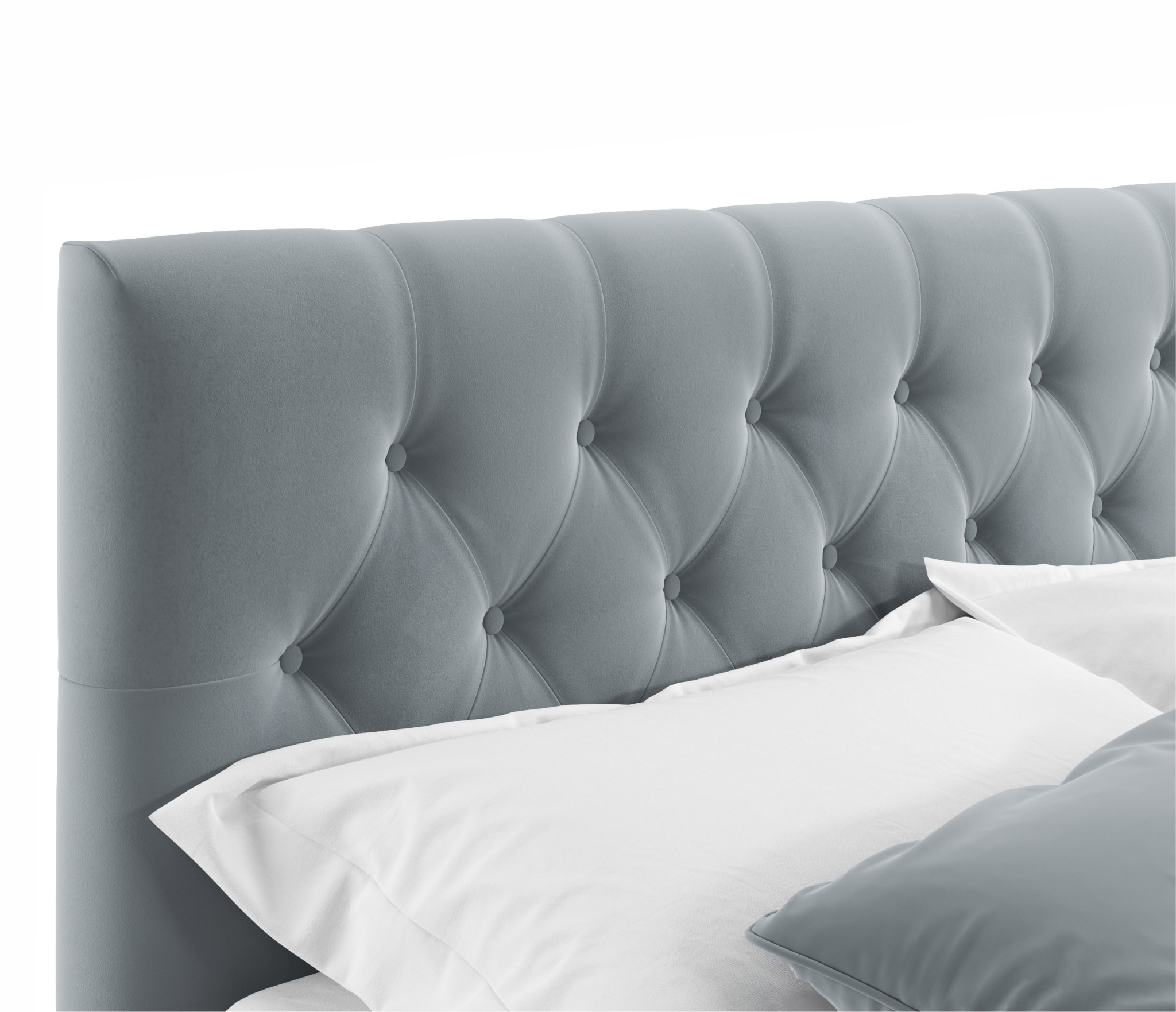 VICTORIA-AQUA - Интерьерная мягкая кровать. Яркий акцент сделан на мягкую высокую рельефную спинку в стиле «Chester Laurence» с классической «каретной стяжкой», изготовленную вручную мастерами с 20-летним стажем. Каретная стяжка на сегодняшний день самый популярный способ обивки мягкой мебели. Мягкое изголовье с такой стяжкой более пухлое и объемное, а соответственно, более удобное не только для сна, но и для приятного времяпрепровождения (просмотра телепередачи, чтения книги, завтрака и даже, работы);