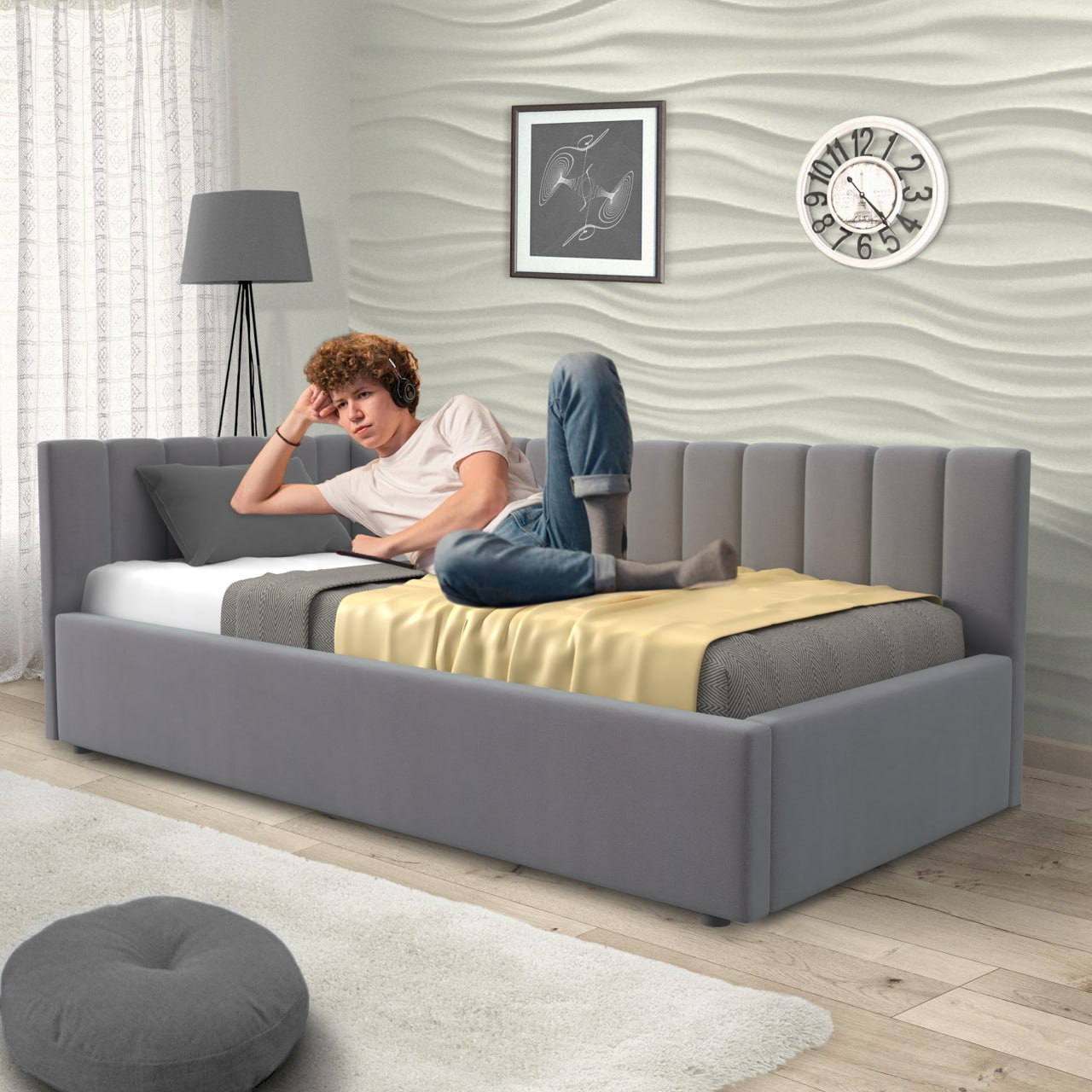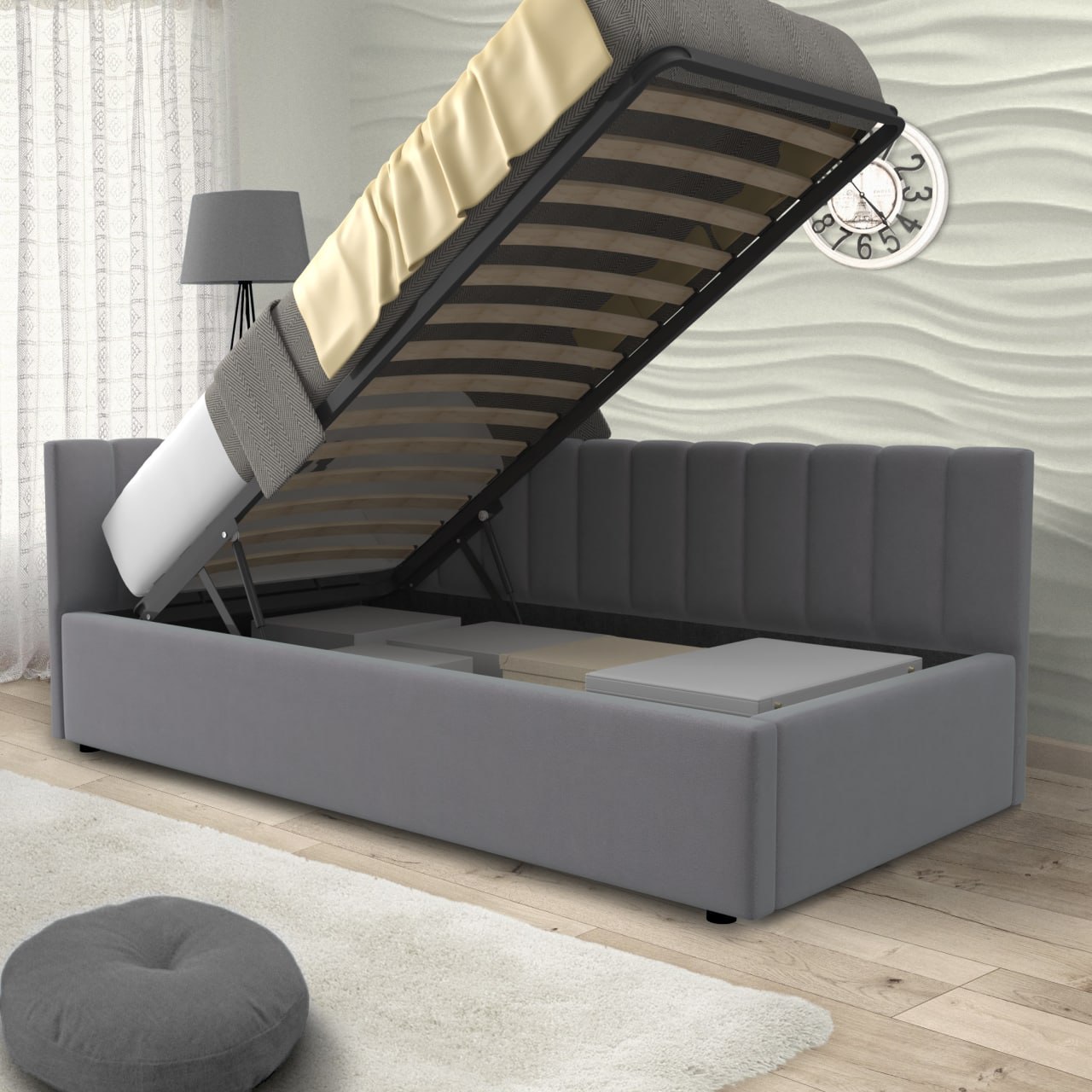 Угловая кровать с подъёмным механизмом MERLIN-GRAY