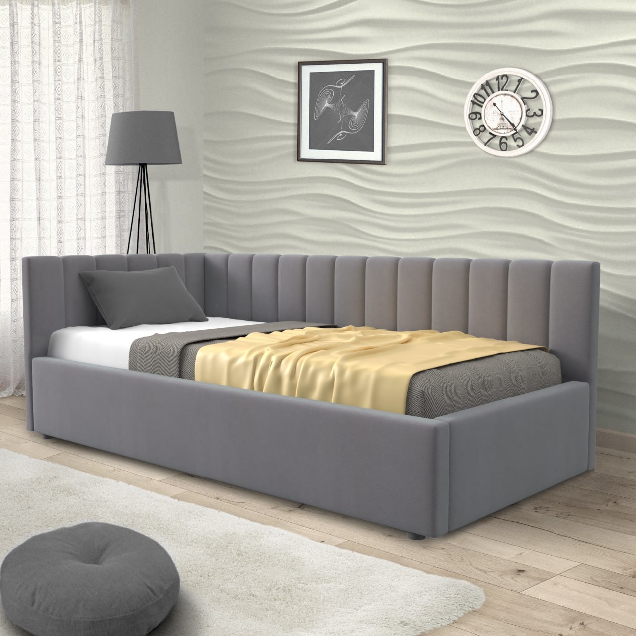 Угловая кровать тахта "Мерлин-Грей" – является функциональным изделием, которое совмещает в себе полноценную кровать, диван или уголок для кухни.