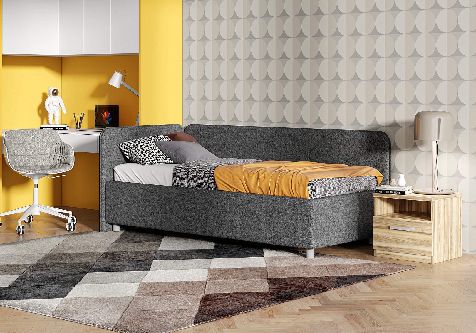 CAPRI-L с/ПМ - Удобная угловая кушетка. В комплект входит цельное металлическое кроватное основание, механизм подъема с бельевым ящиком;