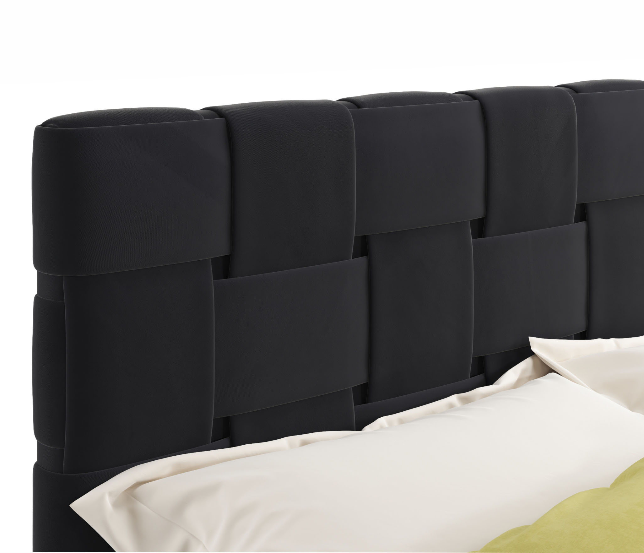 MELODIA-DARK - модное решение для вашей спальни. Яркий акцент 2-спальной кровати сделан на мягкое высокое изголовье, созданное вручную путем переплетения тканей;