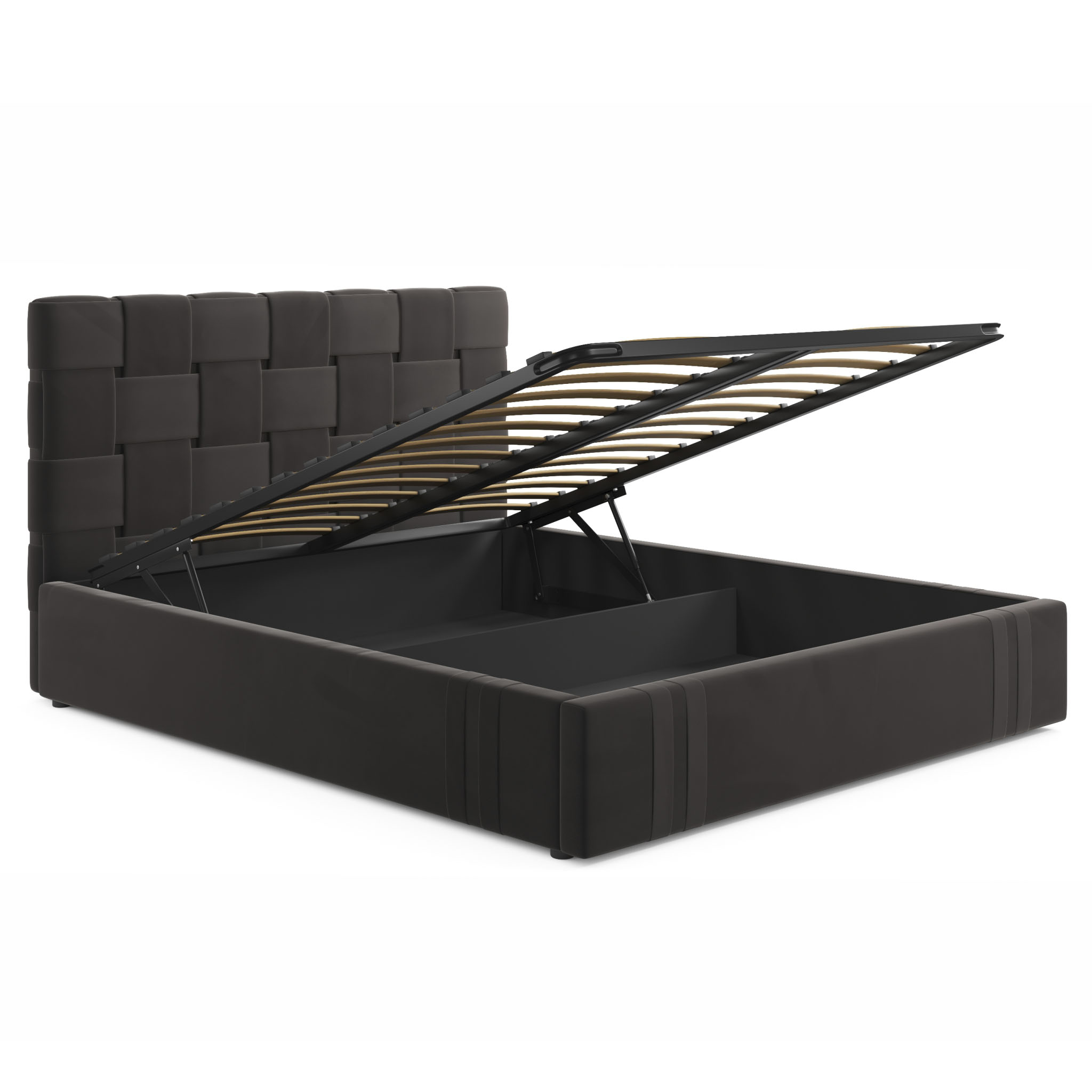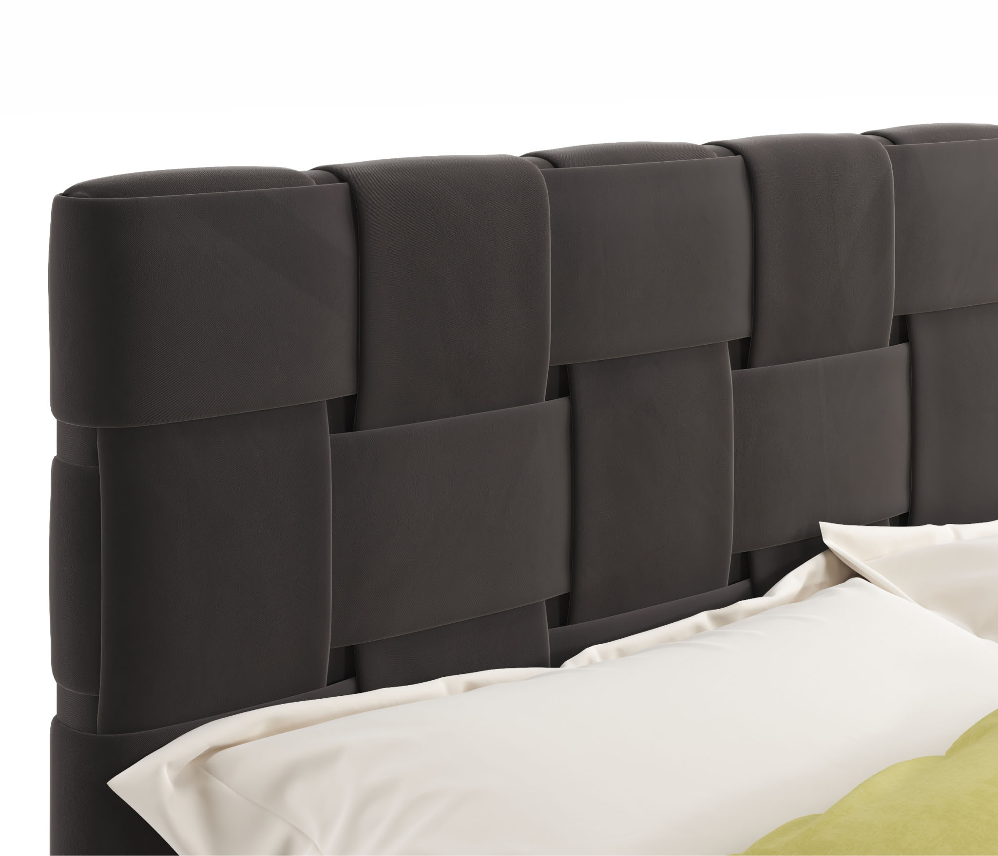 MELODIA-CHOKOLATE - модное решение для вашей спальни. Яркий акцент 2-спальной кровати сделан на мягкое высокое изголовье, созданное вручную путем переплетения тканей;