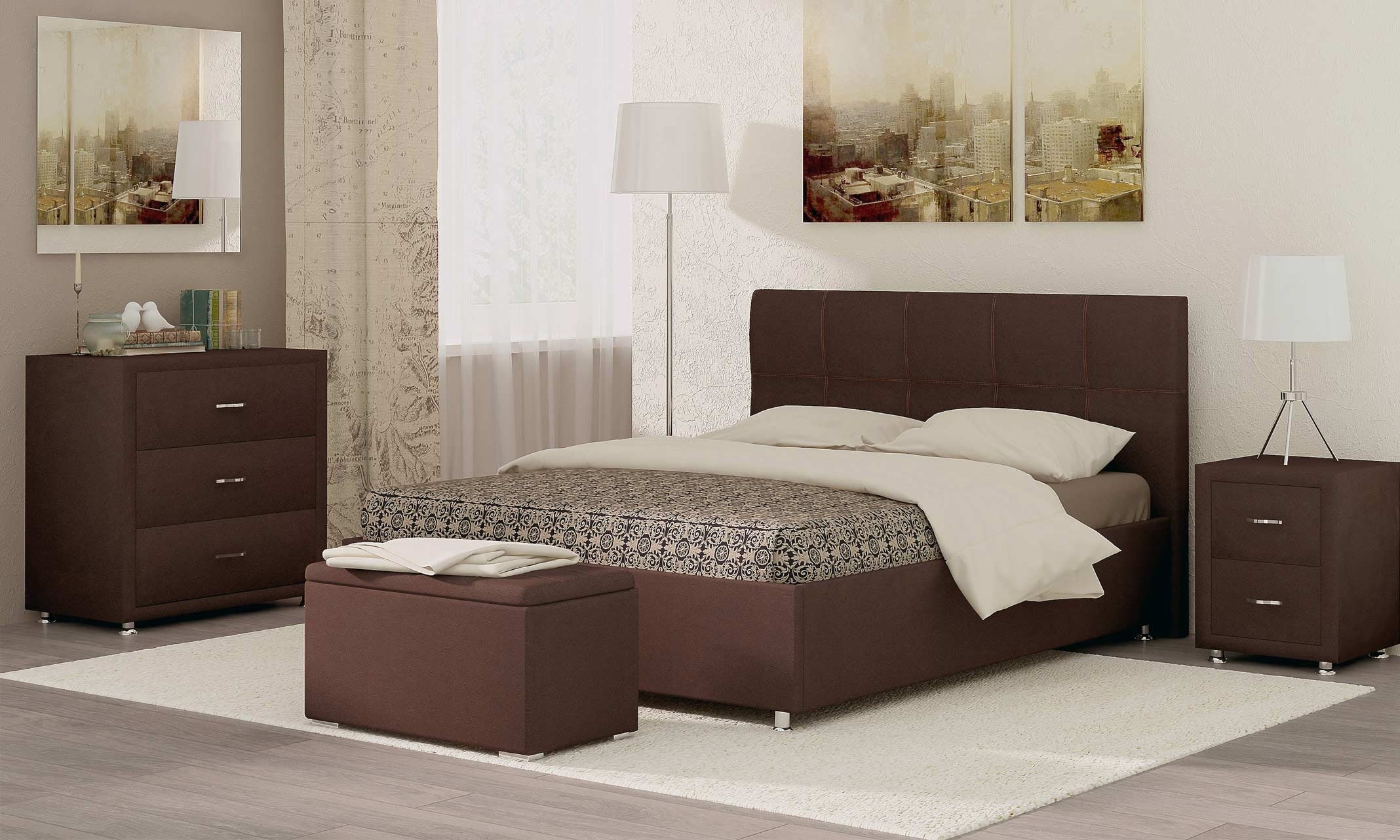 Richmond от фабрики Sonum - Лаконичная кровать с изголовьем, украшенным декоративной строчкой. Модель изготовлена из ДСП. Обратная сторона изголовья обита спандбондом, но, при желании, её можно выполнить из основного обивочного материала. В комплект кровати входит кроватное основание. Каркас основания выполнен из металла, ламели - из берёзы. При необходимости в комплект кровати Ричмонд можно включить подъемный механизм с бельевым ящиком, который существенно увеличит объем хранения вещей, а так же позволит легко производить уборку пыли под кроватью.
