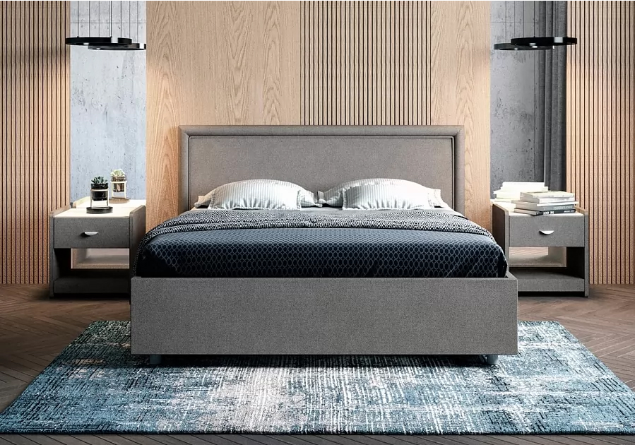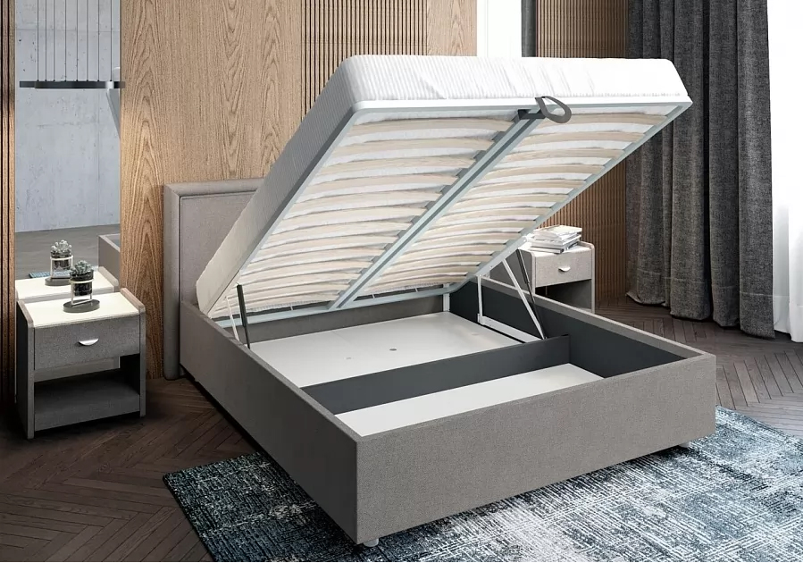 Элегантная интерьерная кровать с мягким изголовьем. Модель изготовлена из ДСП. Обратная сторона изголовья обита спандбондом, но, при желании, её можно выполнить из основного обивочного материала. В комплект кровати входит кроватное основание. Каркас основания выполнен из металла, ламели - из берёзы. При необходимости в комплект можно включить подъемный механизм с бельевым ящиком, который существенно увеличит объем хранения вещей, а так же позволит легко производить уборку пыли под кроватью.