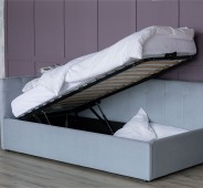 Мягкая кровать, декорированная эко - кожей (3 цвета). В комплект входит пружинный матрас и ортопедическое основание. Подъемный механизм для этой кровати не предусмотрен. Акция - Матрас в подарок!