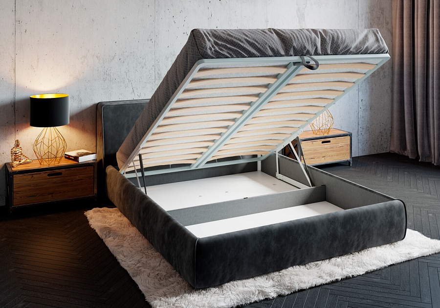 Кровать выполнена в стиле лофт – это отличное дизайнерское решение, способное привнести в обстановку спальни оригинальные черты и доставить истинное эстетическое удовольствие. Кроме того кровать Altea может быть укомплектована подъемным механизмом и вместительным ящиком для хранения.