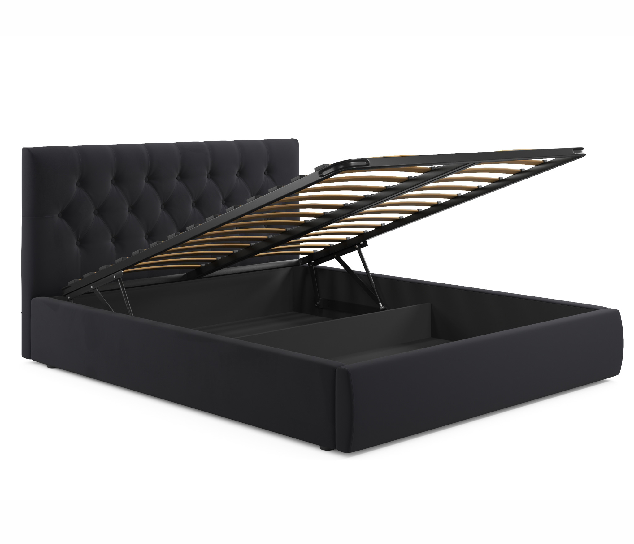 VICTORIA-DARK - Интерьерная мягкая кровать. Яркий акцент сделан на мягкую высокую рельефную спинку в стиле «Chester Laurence» с классической «каретной стяжкой», изготовленную вручную мастерами с 20-летним стажем. Каретная стяжка на сегодняшний день самый популярный способ обивки мягкой мебели. Мягкое изголовье с такой стяжкой более пухлое и объемное, а соответственно, более удобное не только для сна, но и для приятного времяпрепровождения (просмотра телепередачи, чтения книги, завтрака и даже, работы);