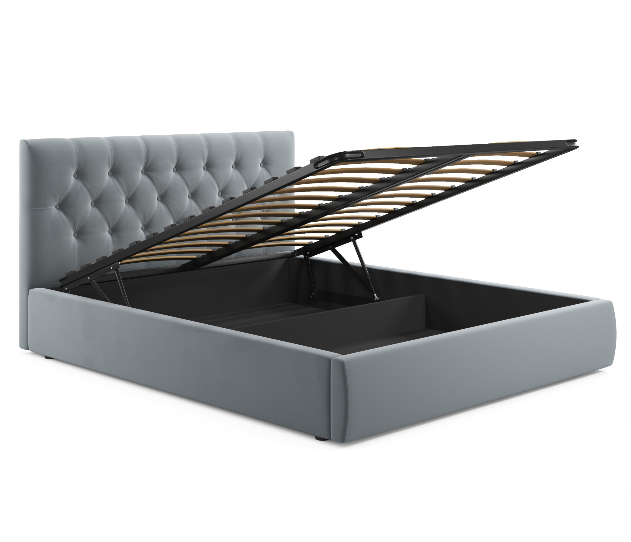 VICTORIA-GRAY - Интерьерная мягкая кровать. Яркий акцент сделан на мягкую высокую рельефную спинку в стиле «Chester Laurence» с классической «каретной стяжкой», изготовленную вручную мастерами с 20-летним стажем. Каретная стяжка на сегодняшний день самый популярный способ обивки мягкой мебели. Мягкое изголовье с такой стяжкой более пухлое и объемное, а соответственно, более удобное не только для сна, но и для приятного времяпрепровождения (просмотра телепередачи, чтения книги, завтрака и даже, работы);