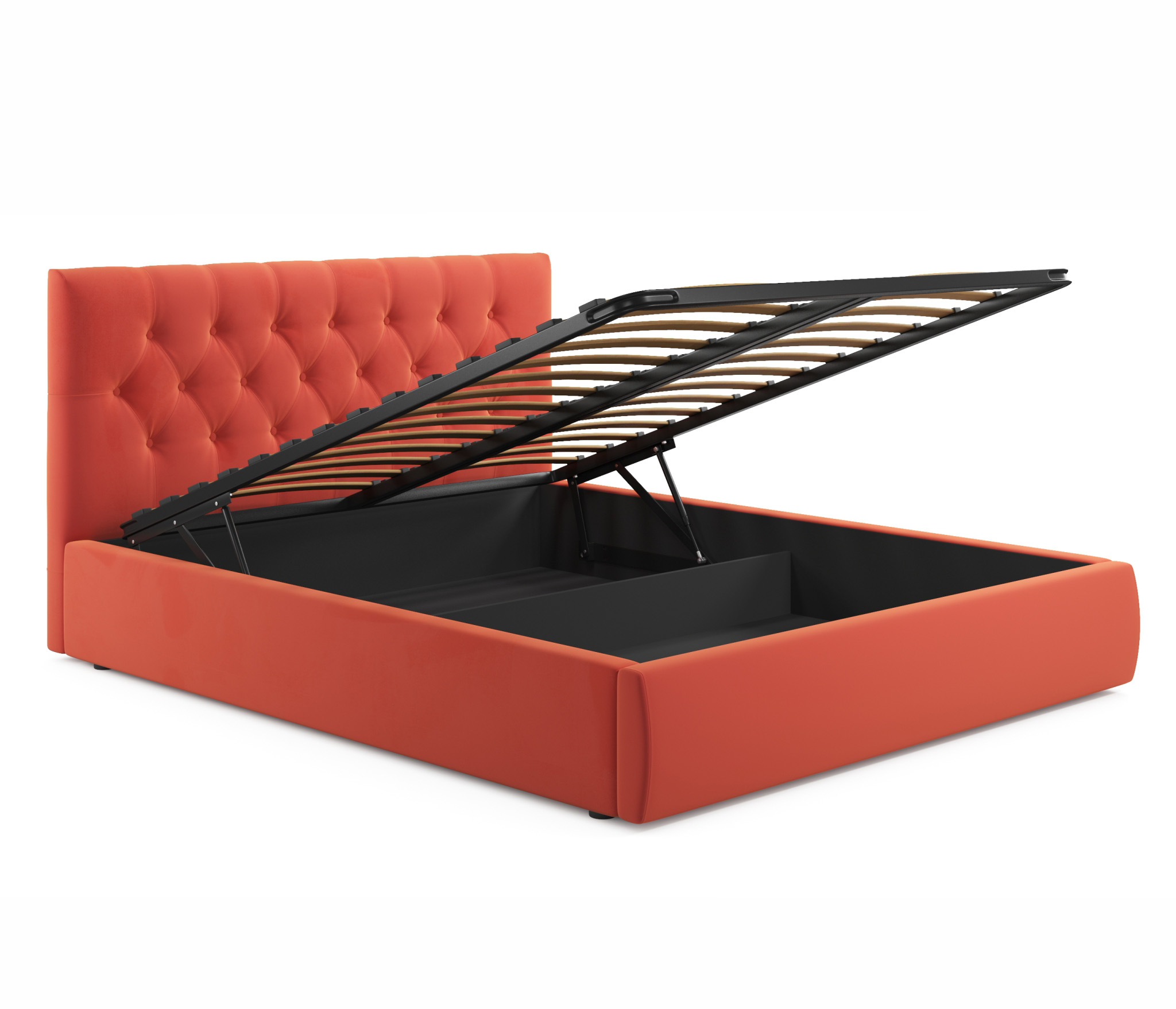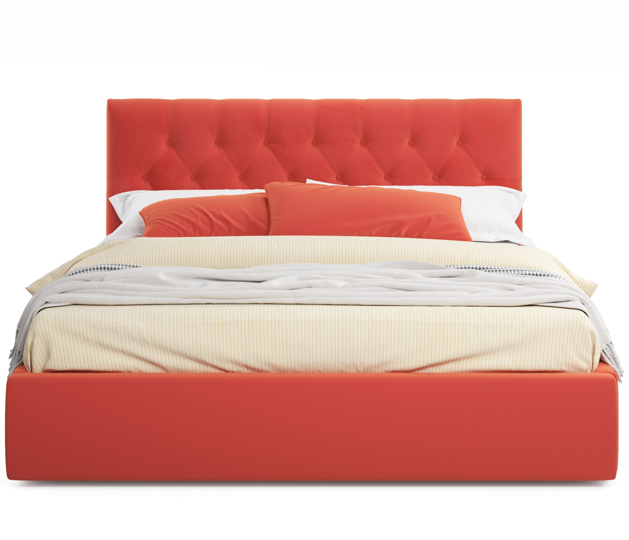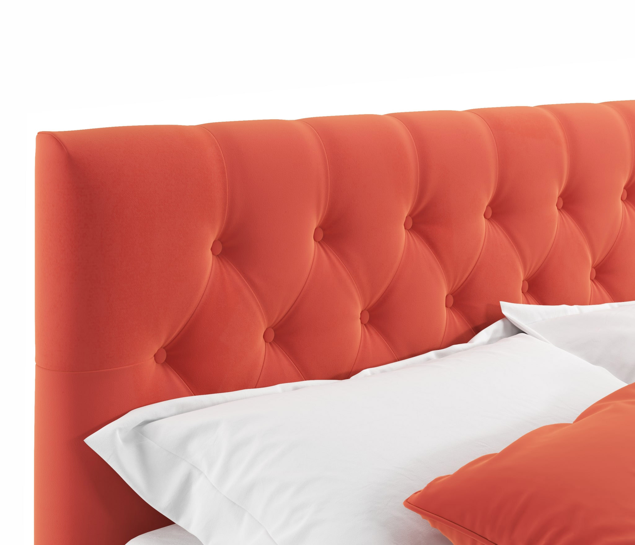 VICTORIA-RED - Интерьерная мягкая кровать. Яркий акцент сделан на мягкую высокую рельефную спинку в стиле «Chester Laurence» с классической «каретной стяжкой», изготовленную вручную мастерами с 20-летним стажем. Каретная стяжка на сегодняшний день самый популярный способ обивки мягкой мебели. Мягкое изголовье с такой стяжкой более пухлое и объемное, а соответственно, более удобное не только для сна, но и для приятного времяпрепровождения (просмотра телепередачи, чтения книги, завтрака и даже, работы);