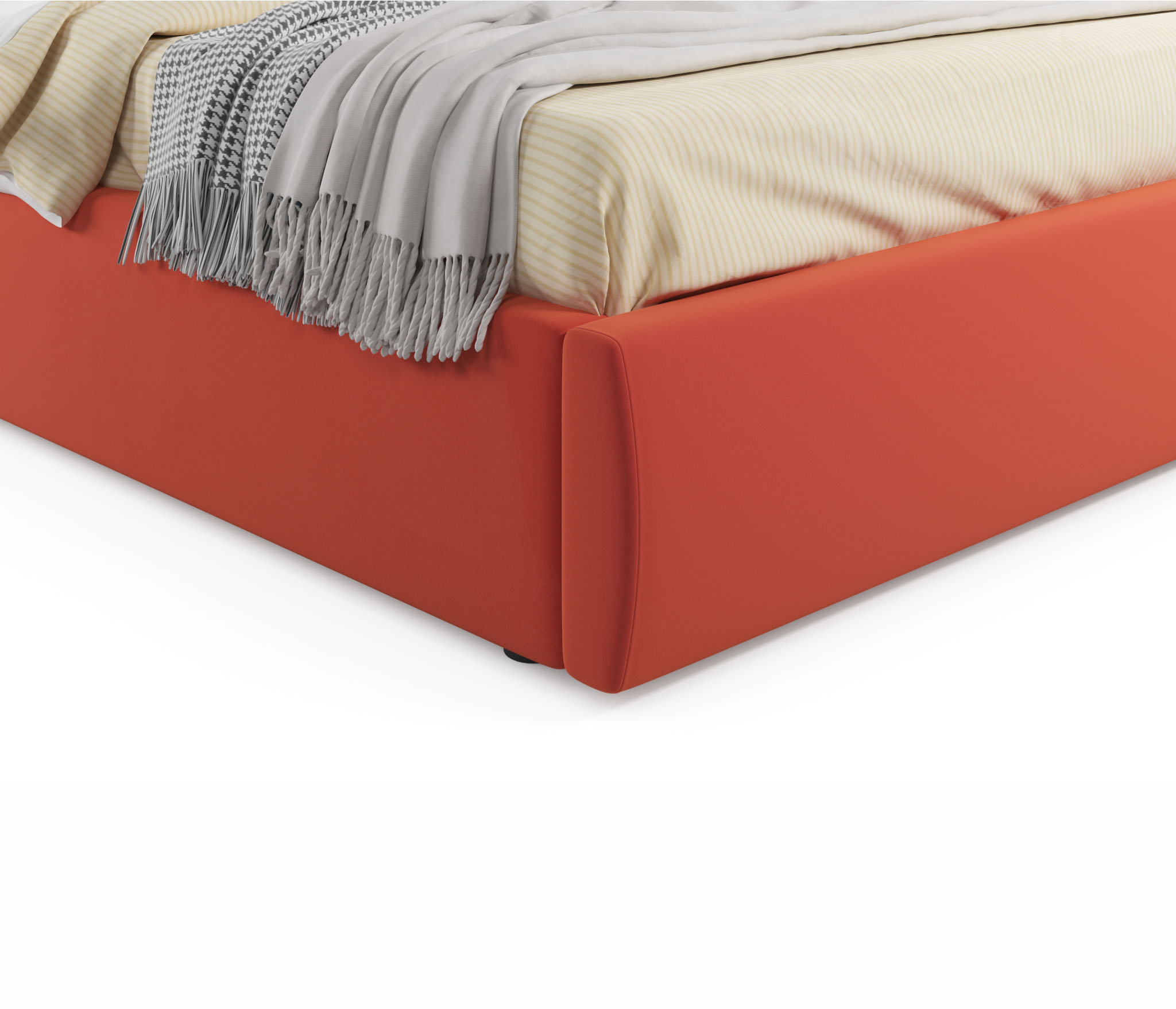 Корпус кровати выполнен из древесной плиты и покрыт специальной мебельной пеной с анатомическим эффектом. Что делает изделие безопасным и позволяет избегать царапин и синяков;
