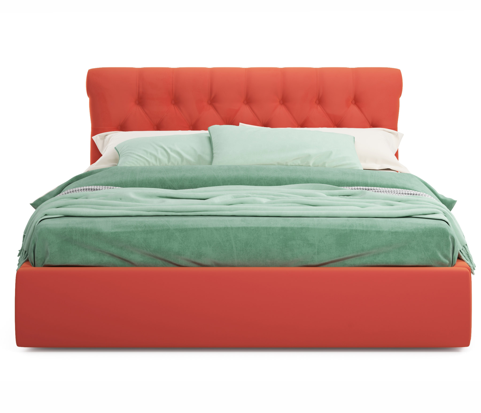 VERSAL-RED - роскошное решение для вашей спальни. Яркий акцент 2-спальной кровати сделан на мягкое высокое изголовье, созданное вручную путем переплетения тканей;