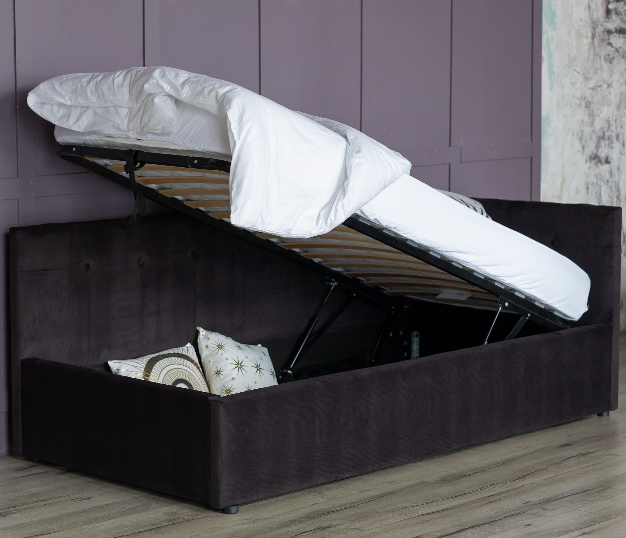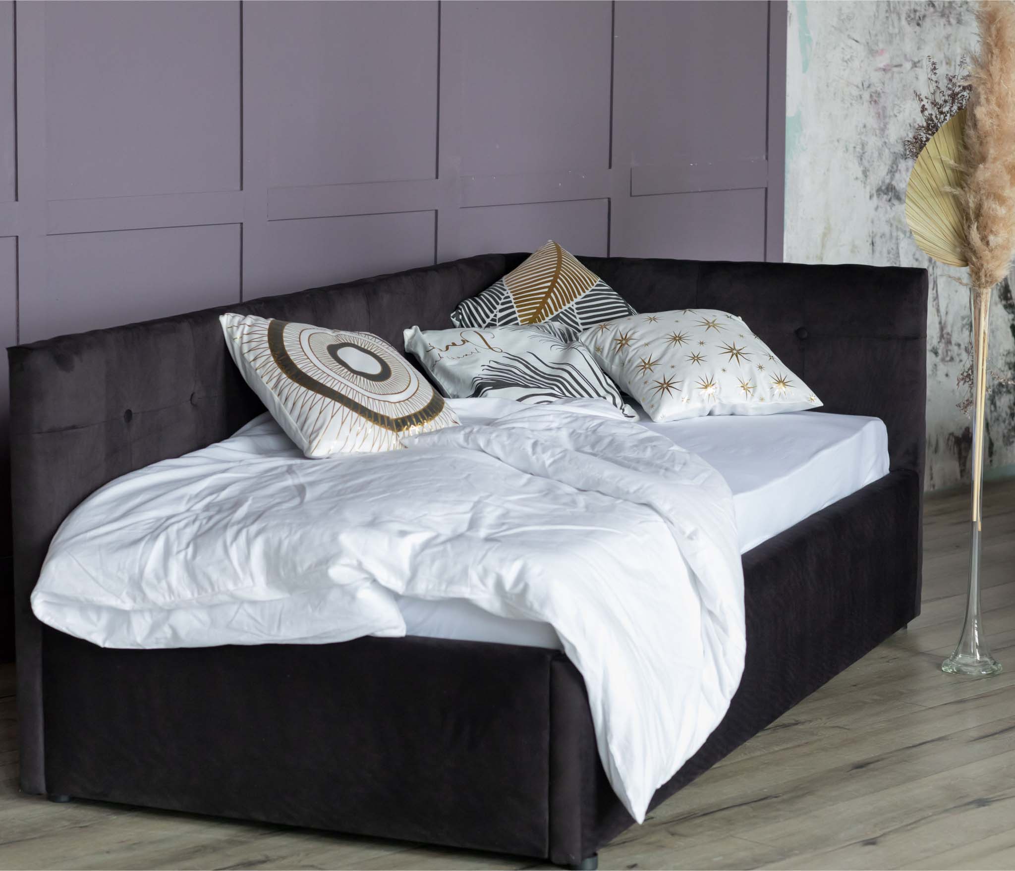 Мягкая угловая кровать BORNEO-Dark создаст комфорт и уют в комнате;