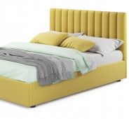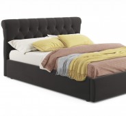 - Изделия имеют мягкую и удобную спинку. В данном случае изголовье выполнено из эко кожи, а боковые элементы созданы из обычного ДСП.