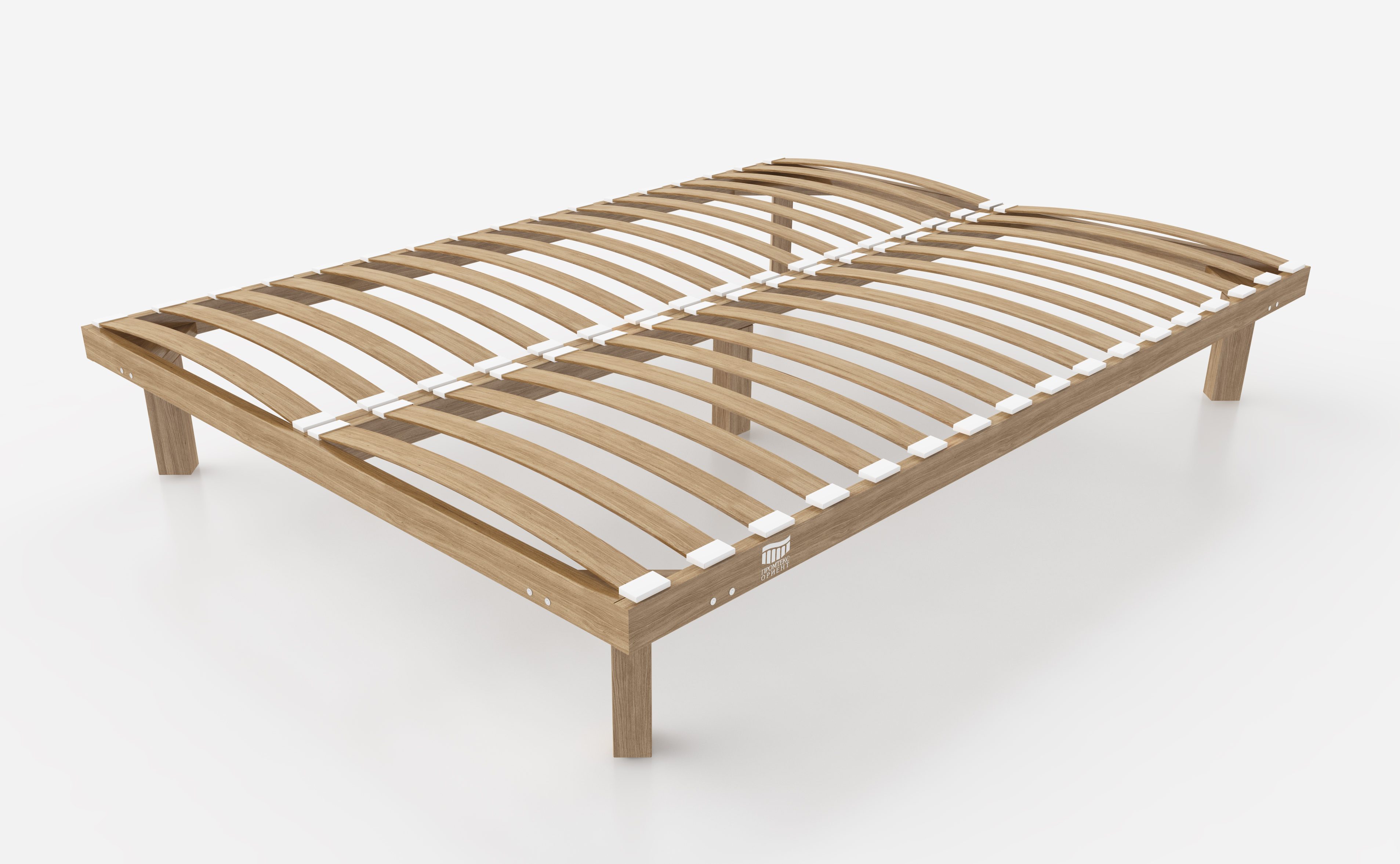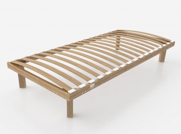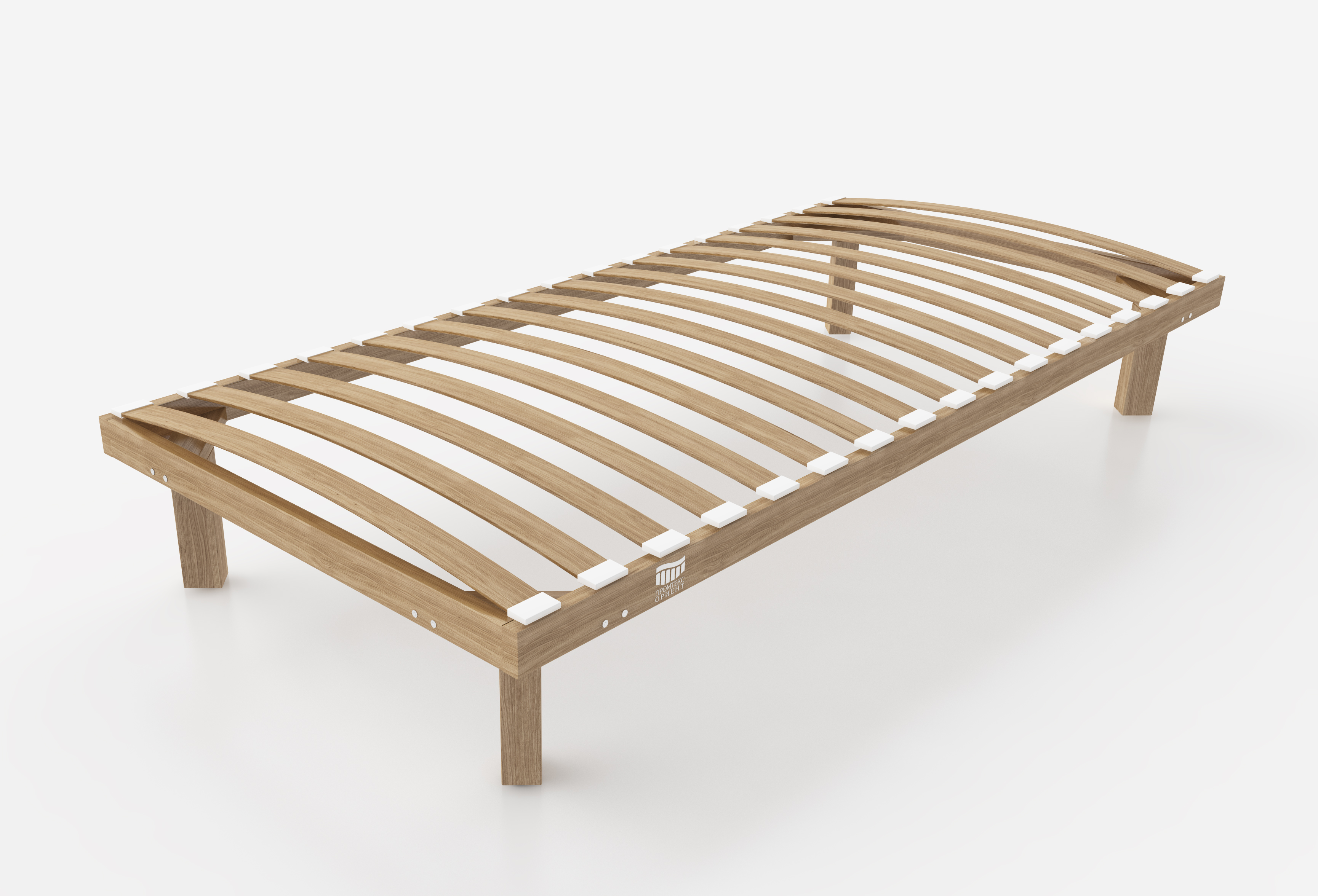 Деревянное основание на ножках. Рама изготовлена из мебельного фанерного бруса 60Х21. Латы березовые 8Х63, 16 штук. Латодержатели пластиковые. Высота основания без ножек 75 мм. Ножки прямоугольного сечения, стандартная высота ножек 22см.