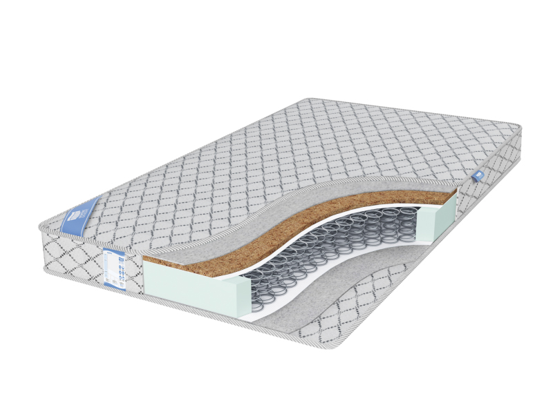 Спальная сторона модели жесткая. Она полезна для спины. Жесткой поверхность делает слой кокосовой койры. Это экологически чистый и натуральный материал. Он повышает ортопедические качества модели. Кокосовое волокно хорошо вентилируется и не вызывает аллергию;