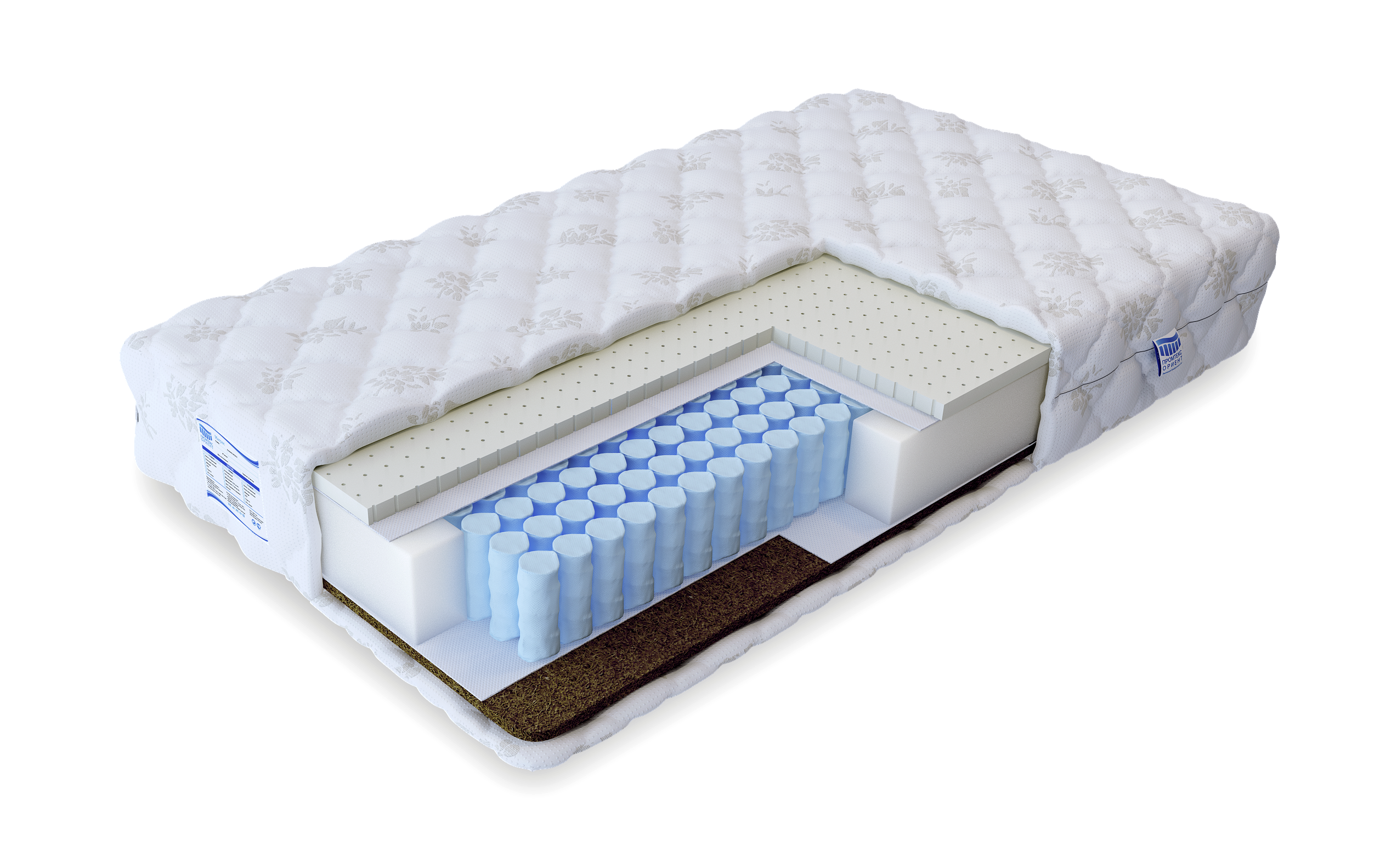 Ортопедический матрас имеет разную жесткость сторон и содержит натуральные наполнители. Базируется на блоке независимых пружин. Пружины оказывают точечную поддержку позвоночнику и равномерно распределяют нагрузку. Изделие выдерживает вес до 130 кг на спальное место.